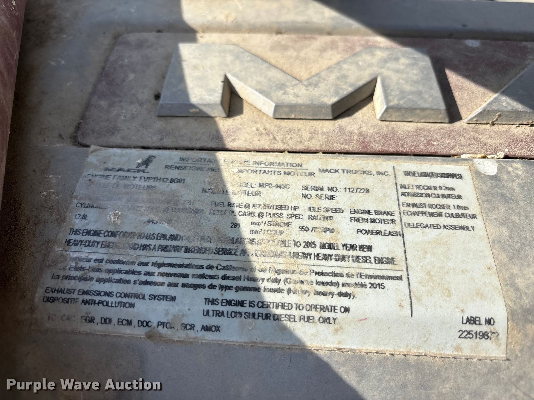 2016 Mack CXU613 semi truck. Miles: 478,104 on odometer, VIN: 1M1AW07Y6GM076632. Engine Mack MP8, Serial: 1127228, Displacement: 12.8L, Cylinders: 6, Fuel type: Diesel, Engine brake. Transmission Eaton Fuller, Manual, Speed: 10. Chassis Axles: Tandem, Differential lock: Full, Suspension: Air Dump valves, Brakes: Air, PTO, Wet kit, GVWR: 59,200 lbs FAWR: 13,200 lbs, IAWR: 23,000 lbs, RAWR: 23,200 lbs, Wheelbase: 154". Interior AC, Heat, Heated mirrors, Cruise control, Air ride cab. Features Fifth wheel type: Fixed, Fuel tank: Single. Tires Size: 11R22.5. Notes Dash warning indicator: Check engine, ABS, Electrical fault, ATC, Jump start required during on-site data collection. Missouri title. Title distribution may be delayed up to 14 days from verification of funds. Smithfield. Princeton, MO 64673