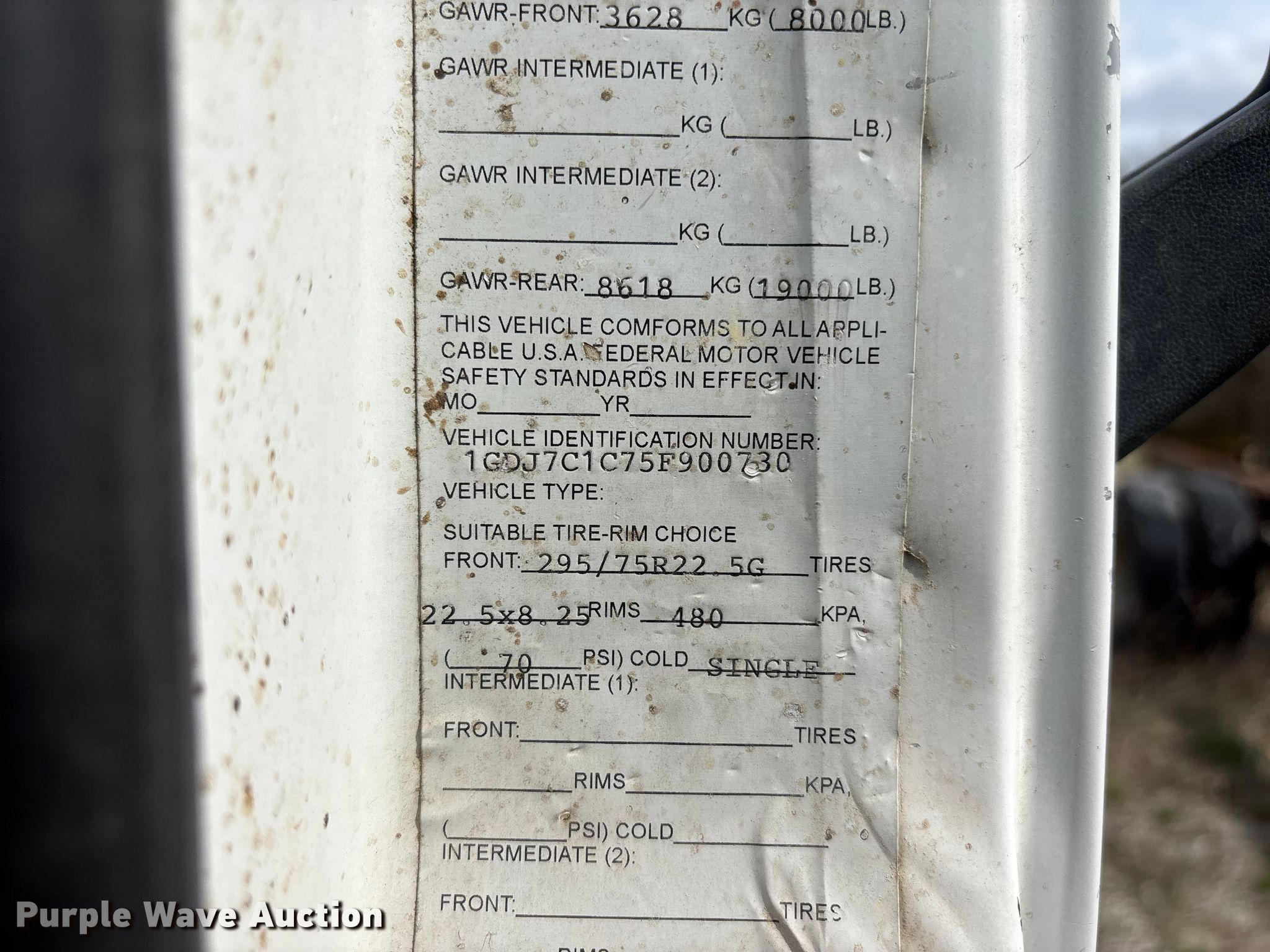 Purple Wave is selling a used Truck Chassis in Missouri. This item is a 2005 GMC C7500 truck cab and chassis with the following: Miles: Unknown, VIN: 1GDJ7C1C75F900730