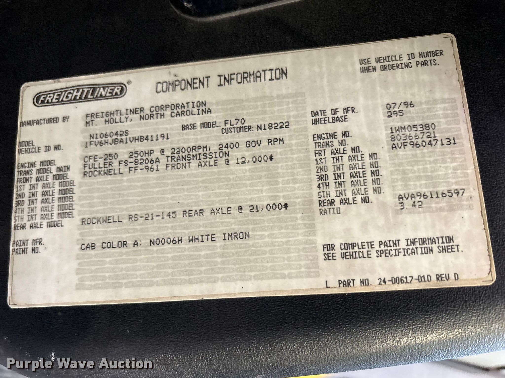 - VIN: 1FV6HJBA1VH841191