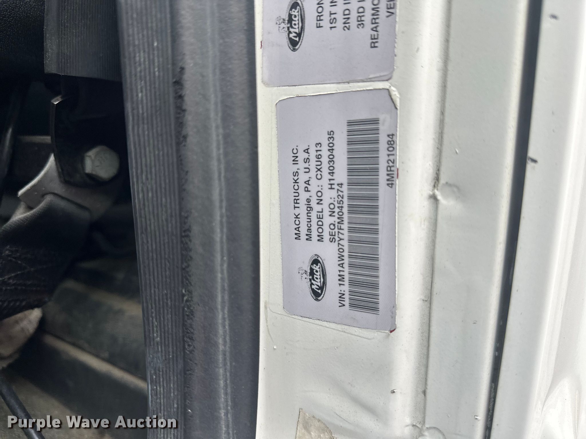 Purple Wave is selling a used Truck Tractor in Minnesota. This item is a 2015 Mack CXU613 semi truck with the following: Miles: 555,053 on odometer, Hours: 21,460 on meter, VIN: 1M1AW07Y7FM045274