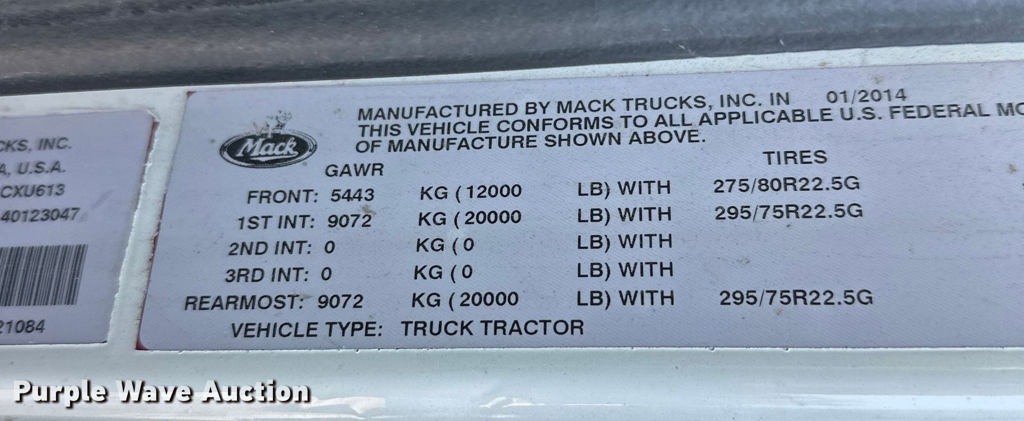 Purple Wave is selling a used Truck Tractor in Minnesota. This item is a 2015 Mack CXU613 semi truck with the following: Miles: 58,1034, VIN: 1M1AW07Y0FM044869