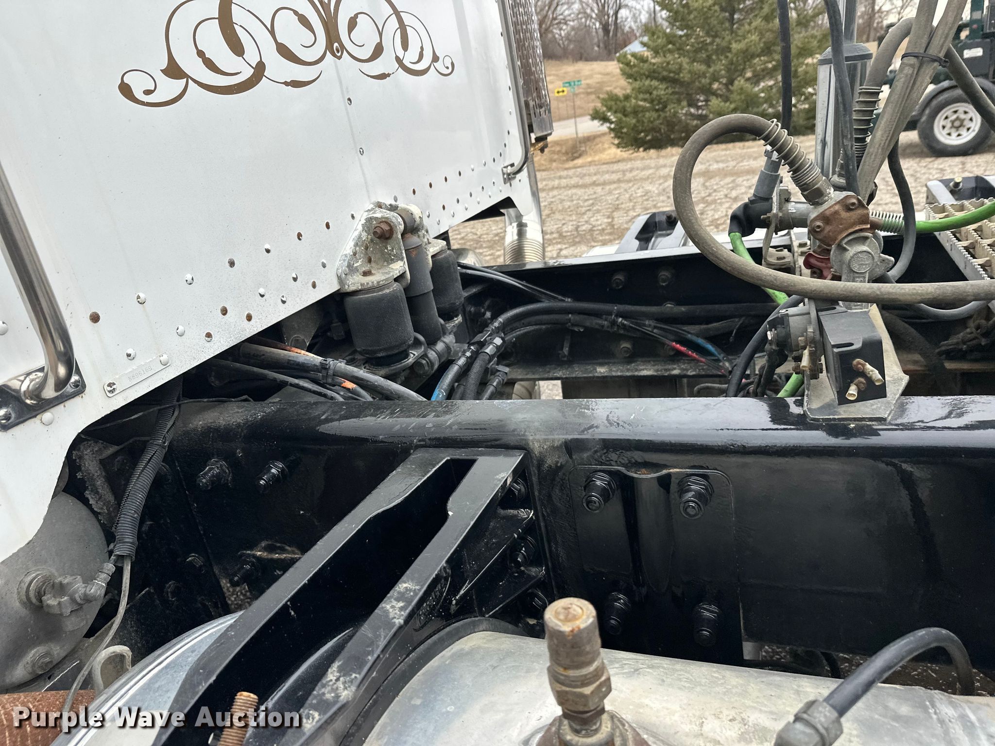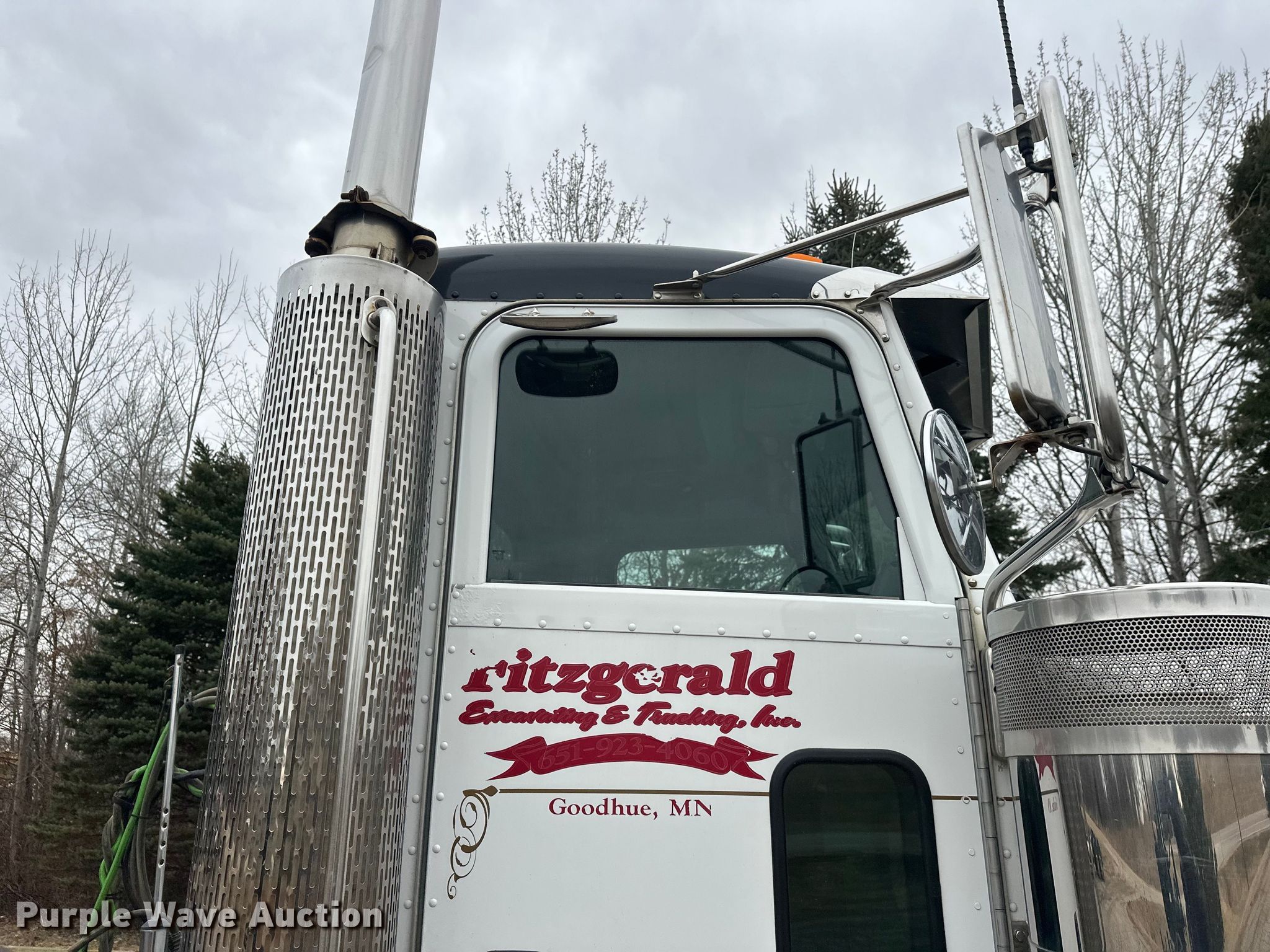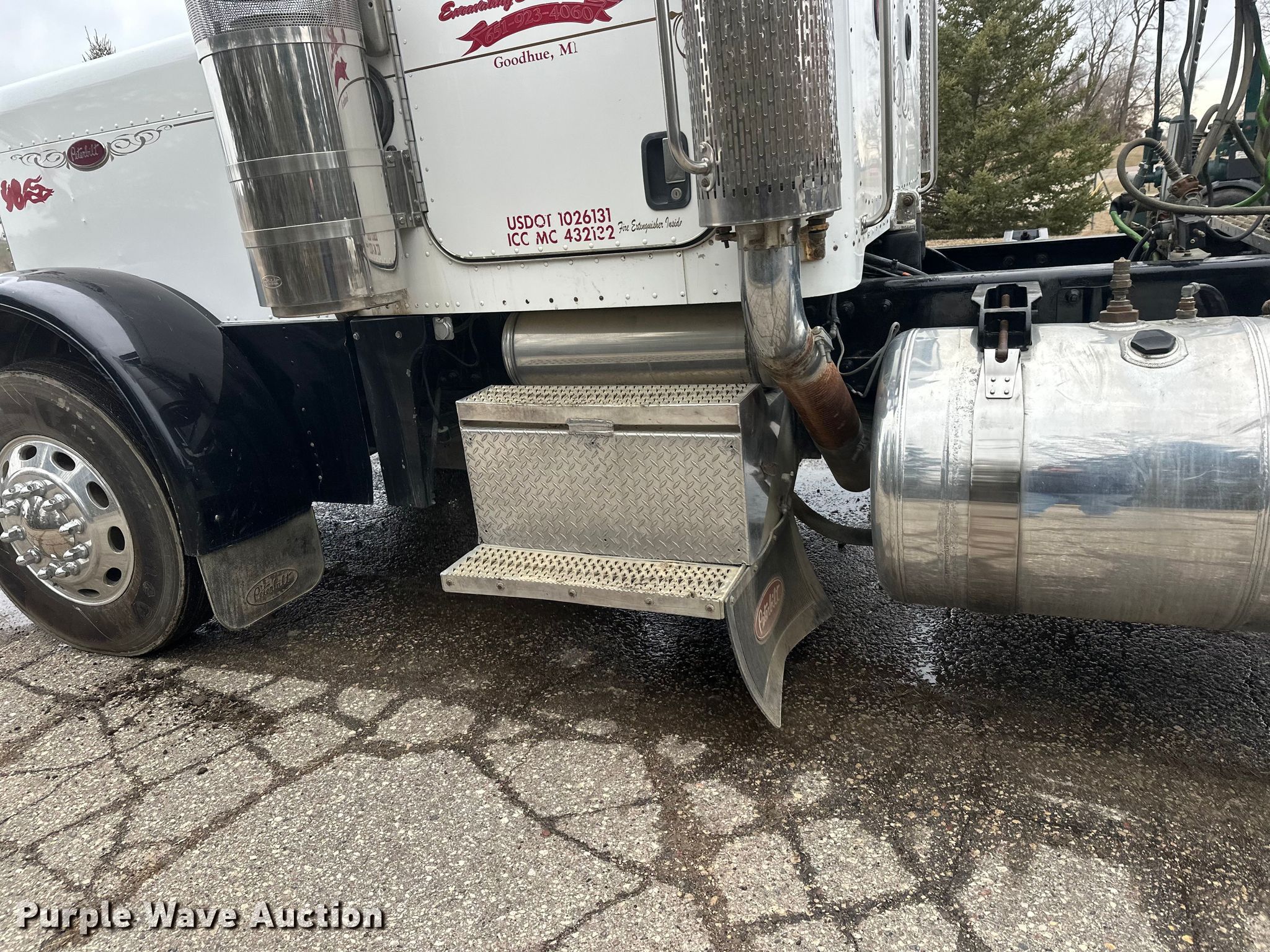 2006 Peterbilt 379 semi truck. Miles: 685,824 on odometer, Hours: 25,850 on meter, VIN: 1XP5DB9X26N896169. Engine Caterpillar C15, Cylinders: 6, Fuel type: Diesel. Transmission Eaton Fuller, Manual, Speed: 18. Chassis Axles: Tandem, Differential lock: Full, Suspension: Air Dump valves, Brakes: Air, PTO, Wet kit, GVWR: 52,000 lbs FAWR: 12,000 lbs, IAWR: 20,000 lbs, RAWR: 20,000 lbs. Interior AC, Heat, Heated mirrors, Power windows, Power locks, Cruise control, Air ride cab. Features Deck plate: Aluminum, Fifth wheel type: Air operated, Sliding, Fuel tank: Dual. Tires Size: 11R22.5. Notes Dash warning indicator: Check engine, ABS. Minnesota title. Title distribution may be delayed up to 14 days from verification of funds. Fitzgerald Excavating & Trucking. Goodhue, MN 55027