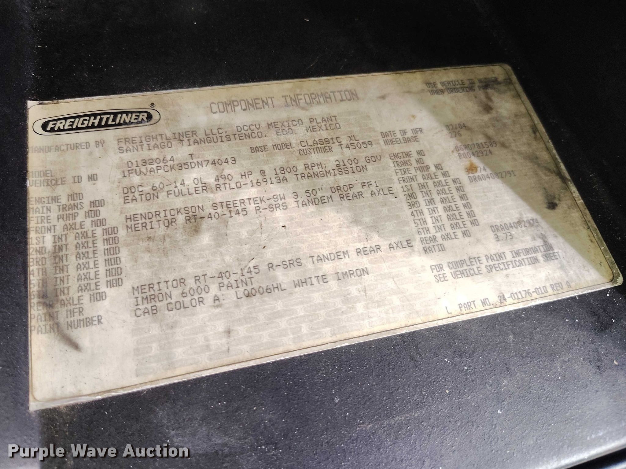 Take a look at this used 2005 Freightliner FLD semi truck being sold on April 30th, 2026 in the Thursday April 30 Truck and Trailer Auction made by Freightliner. Take a look at all of the item information below or take a look at similar auctions for Trucks.