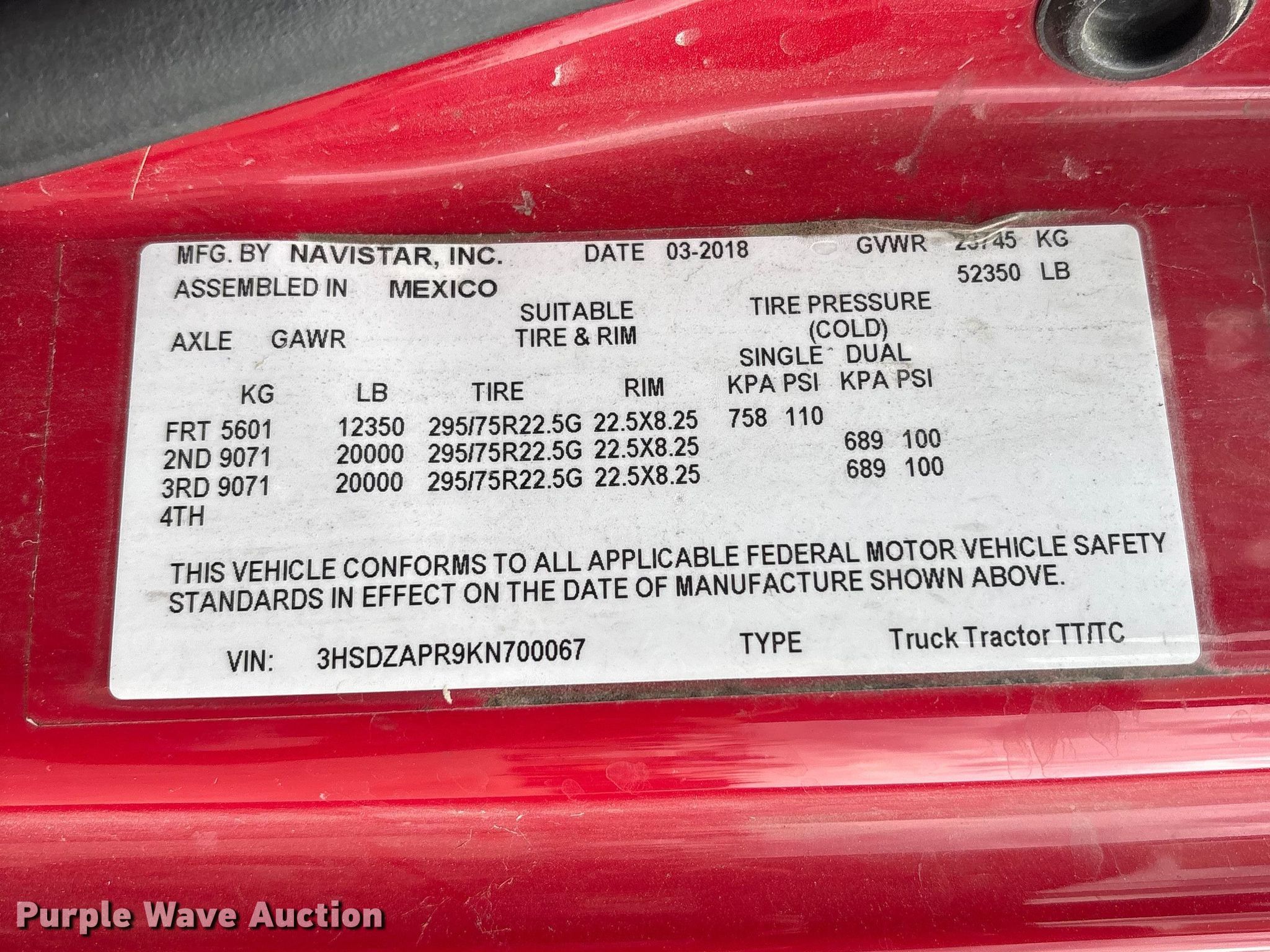 - VIN: 3HSDZAPR9KN700067
