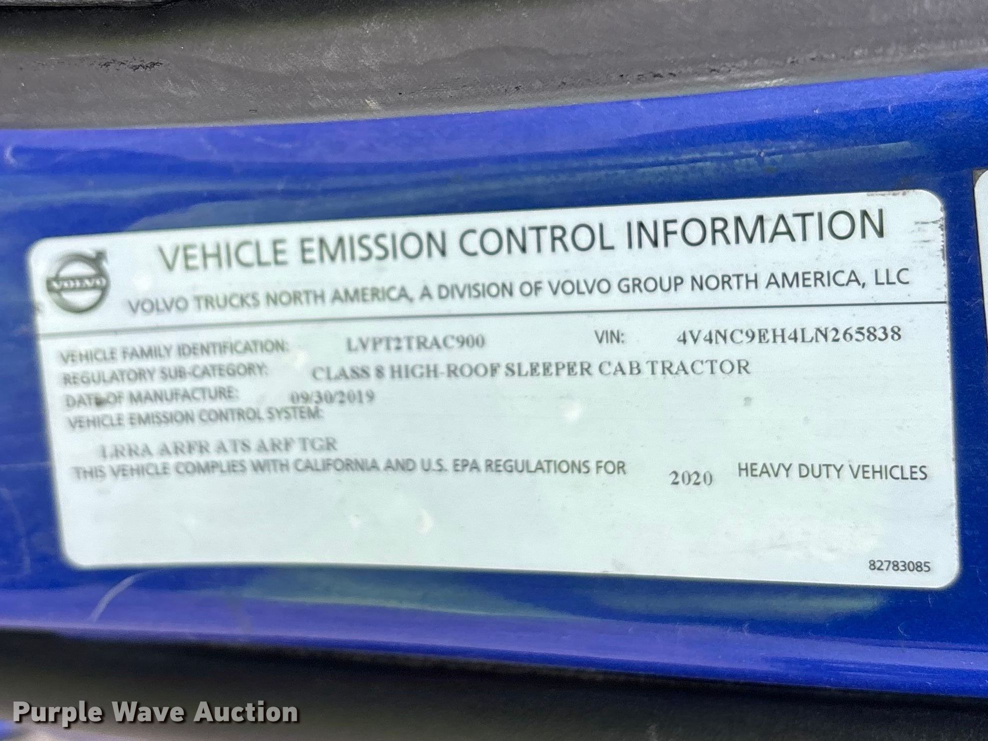 Purple Wave is selling a used Truck Tractor in Oklahoma. This item is a 2020 Volvo VNL semi truck with the following: Miles: 670,655 on odometer, Hours: 20,362 on meter, VIN: 4V4NC9EH4LN265838, Unit #: 76228445