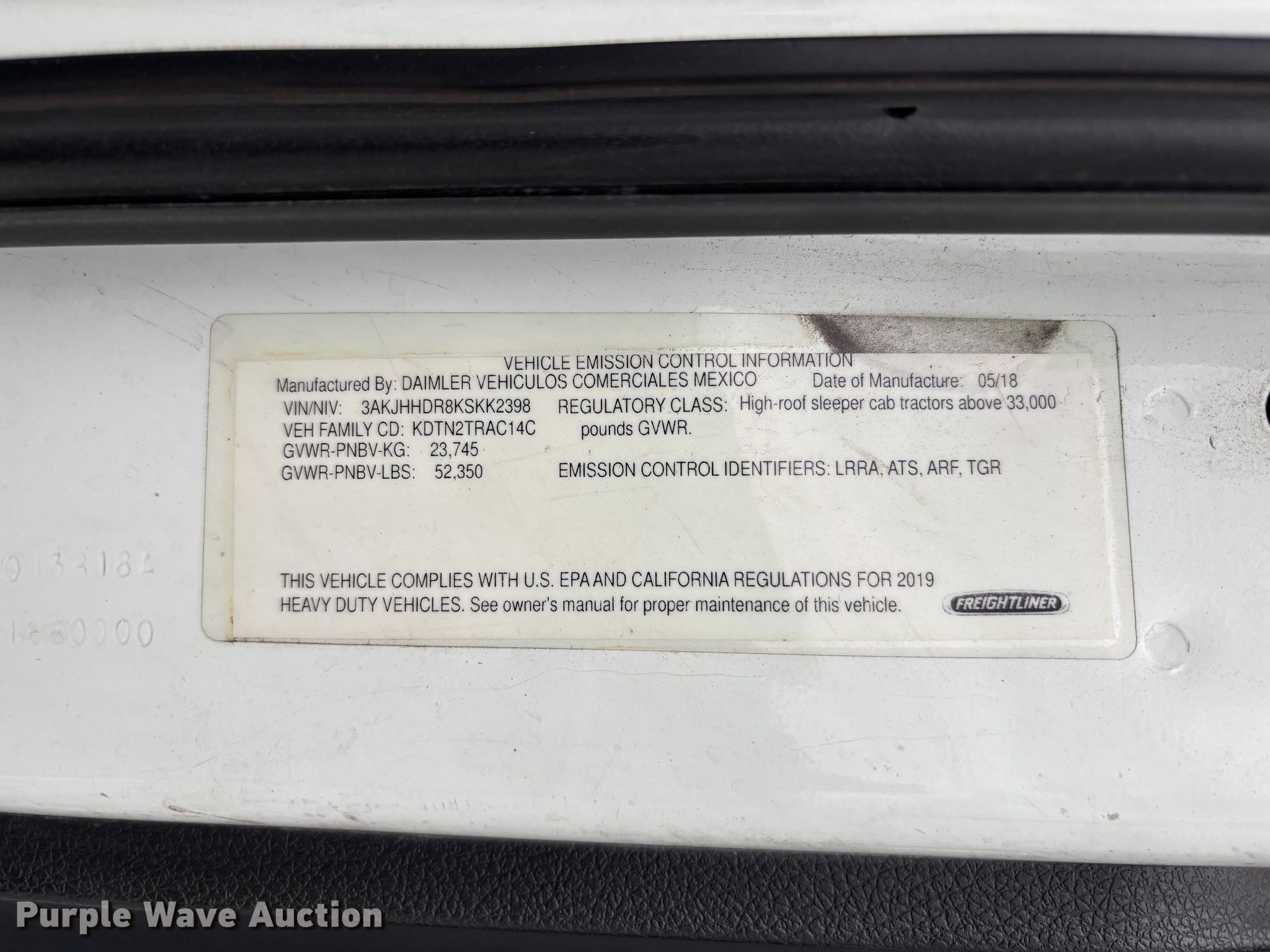 Purple Wave is selling a used Truck Tractor in Nevada. This item is a 2019 Freightliner Cascadia semi truck with the following: Miles: 778,489 on odometer, Hours: 23,373 on meter, VIN: 3AKJHHDR8KSKK2398, Unit #: 78529985