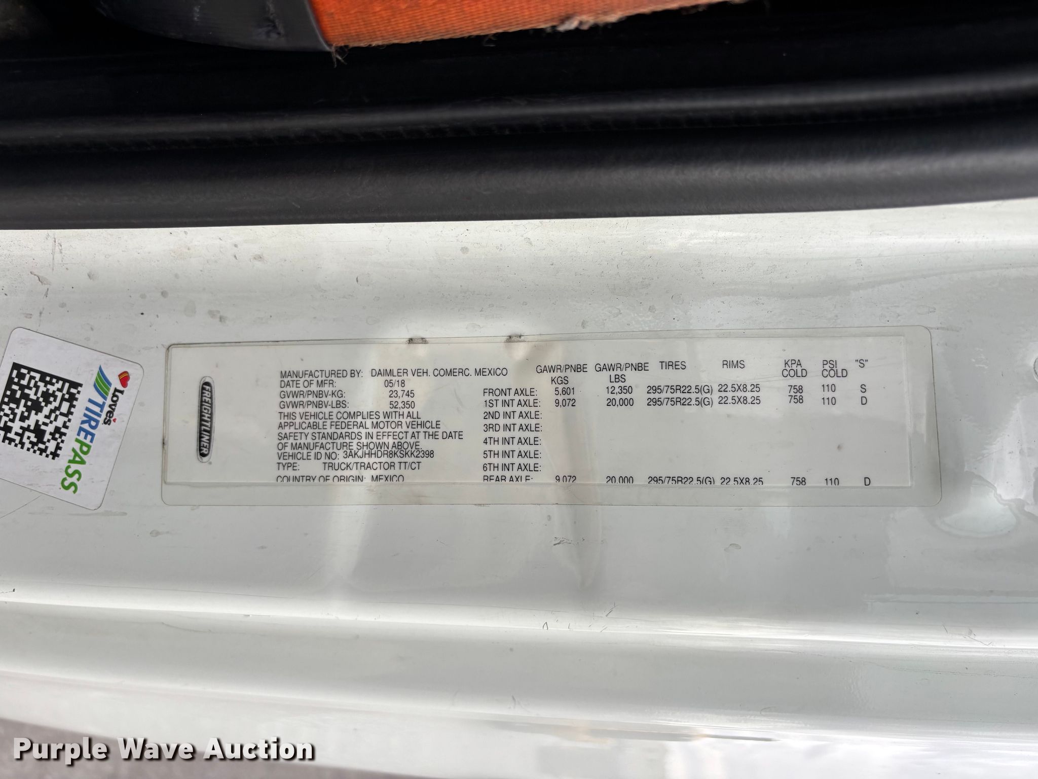 Take a look at this used 2019 Freightliner Cascadia semi truck being sold on April 30th, 2026 in the Thursday April 30 Truck and Trailer Auction made by Freightliner. Take a look at all of the item information below or take a look at similar auctions for Trucks.