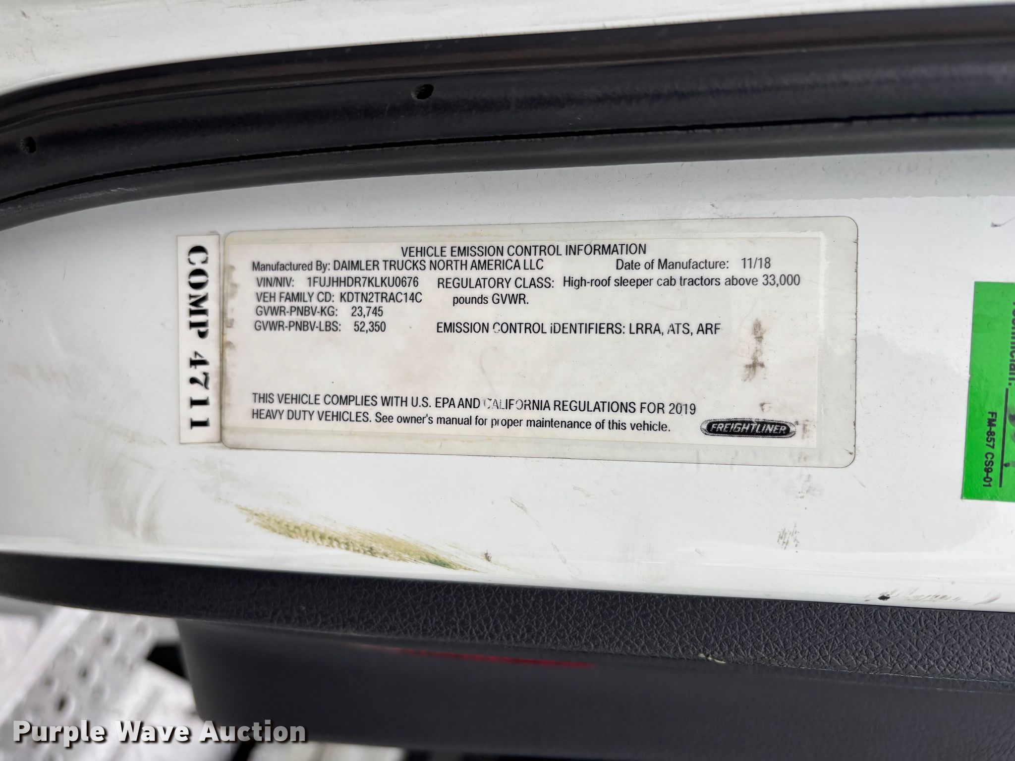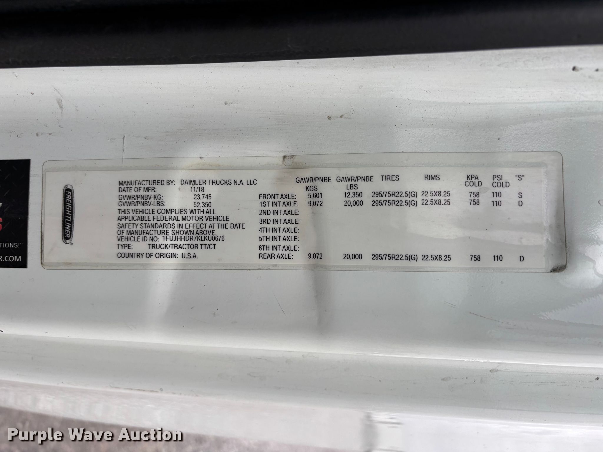 - VIN: 1FUJHHDR7KLKU0676