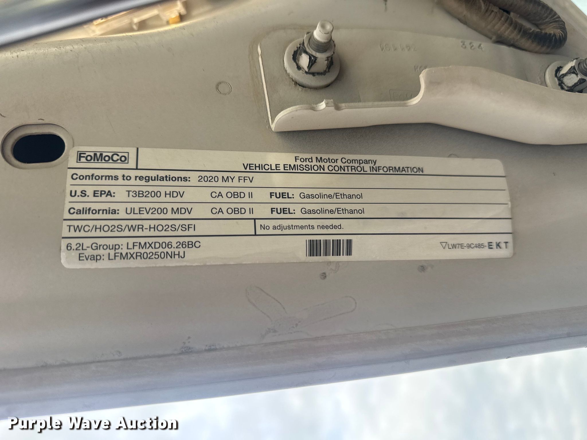 2020 Ford F250 Super Duty Ext. Cab pickup truck. Miles: 153,723 on odometer, VIN: 1FT7X2A68LEC63210, Unit #: 02.774. Engine Displacement: 6.2L, Cylinders: 8, Fuel type: Gas. Transmission Automatic. Chassis Differential lock. Interior AC, Heat, Power windows, Power locks, Cruise control, Backup camera, Auxiliary controls, Brake controller. Tires Size: LT265/70R17. Notes Dash warning indicator: TPMS, Windshield chipped or cracked. Oklahoma title. Title distribution may be delayed up to 30 days from verification of funds. Sherwood Construction Company. Owasso, OK 74055