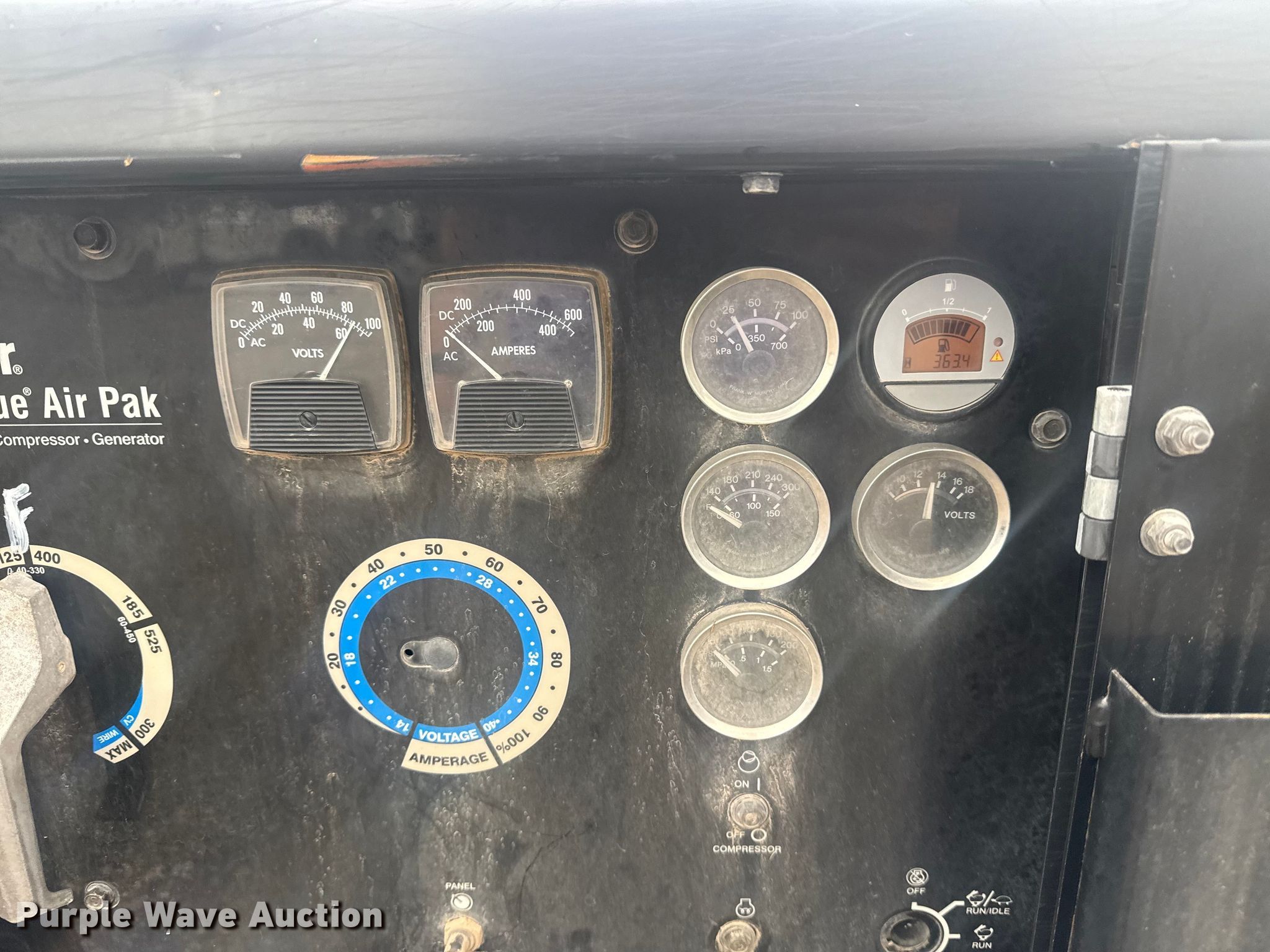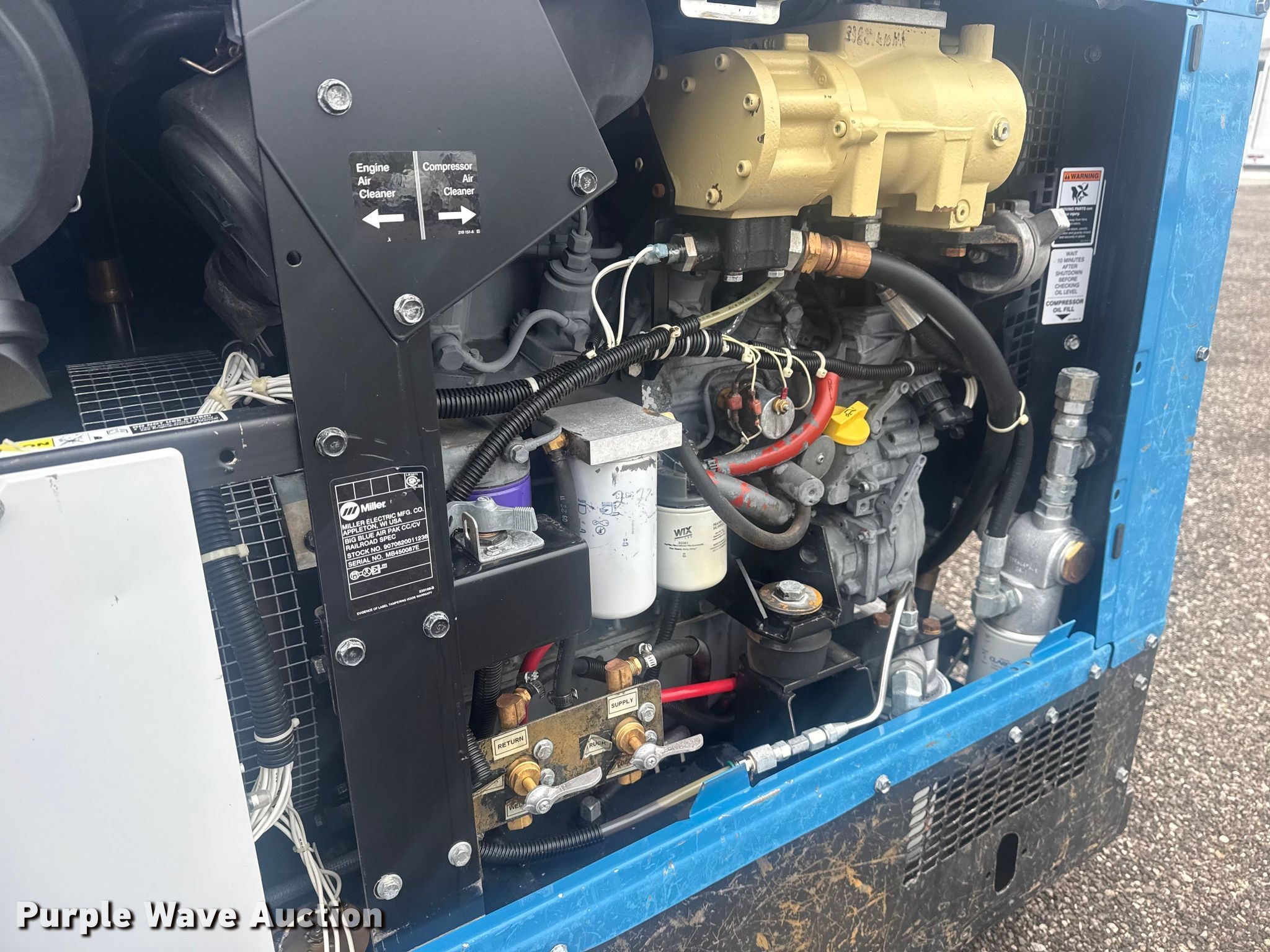Miller Big Blue Air Pak welder/generator. Hours: 363 on meter, Serial: MB450087E. Engine Cylinders: 4, Fuel type: Diesel. Features Welder Capabilities: CC, CV, DC, AC, Wire, MIG, TIG, Stick, Generator Phase: Single, Three, 240V outlets: 2, 120V outlets: 2, Air compressor CFM: 60, PSI: 100. Collinsville, OK 74021