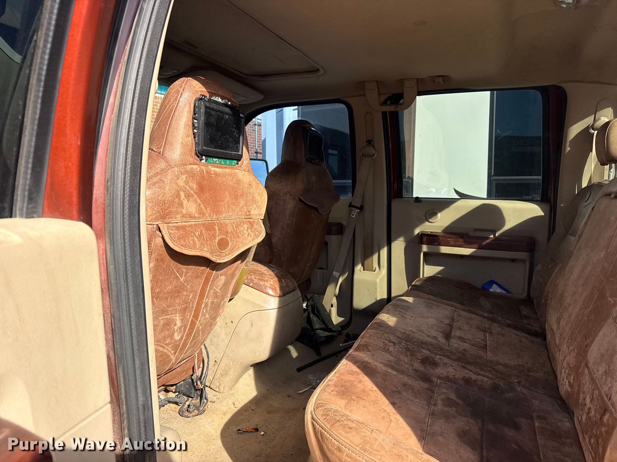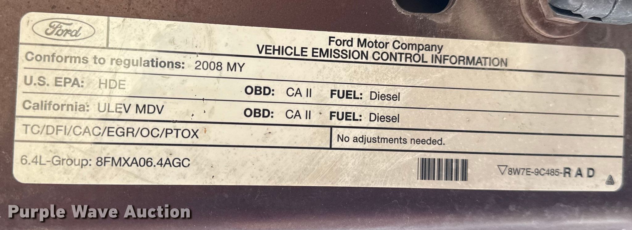 2008 Ford F250 Super Duty Crew Cab pickup truck. Miles: Unknown, VIN: 1FTSW21R48EB78377. Engine Displacement: 6.4L, Cylinders: 8, Fuel type: Diesel. Transmission Automatic, Four wheel drive. Interior AC, Heat, Seat: Heated, Power driver, Power passenger, Heated mirrors, Power windows, Power locks, Cruise control, Auxiliary controls, Brake controller, Powered sunroof. Tires Size: 35x12.50R18LT. Notes Contents included, Dead battery, Passenger door handle missing, Flat tire, Non-operational unit. Lender owned. Item condition and history unknown. Muscogee (Creek) Nation Title. Mileage has not been verified. Odometer discrepancy will be marked on the title. Title distribution may be delayed up to 30 days from verification of funds.... American Heritage Bank. Mannford, OK 74044