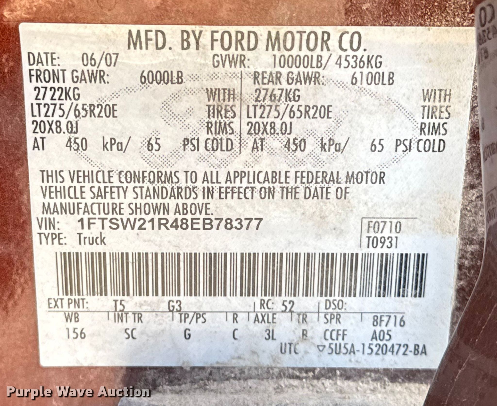 Purple Wave is selling a used 3/4 or 1 Ton Pickup or Van in Oklahoma. This item is a 2008 Ford F250 Super Duty Crew Cab pickup truck with the following: Miles: Unknown, VIN: 1FTSW21R48EB78377