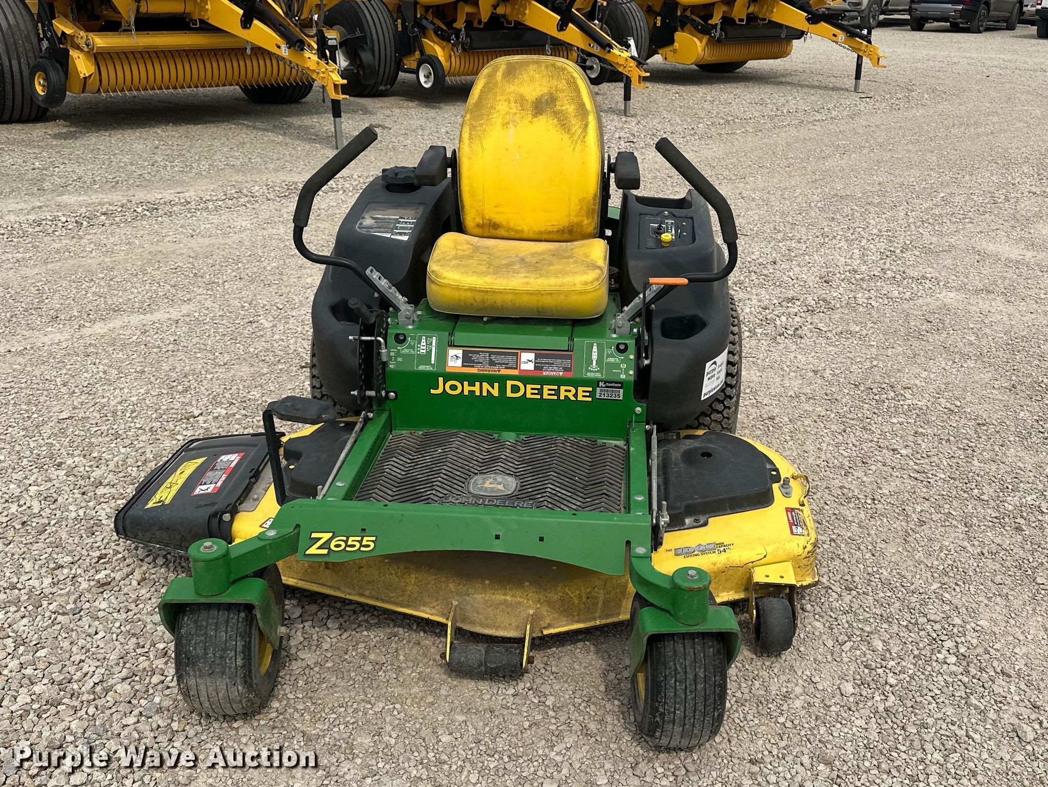 Purple Wave is selling a used Lawn Mower in Kansas. This item is a 2011 John Deere Z655 ZTR lawn mower with the following: Hours: 321 on meter, Cutting width: 54", Serial: 1M0Z655WABM102885, Unit #: 213235