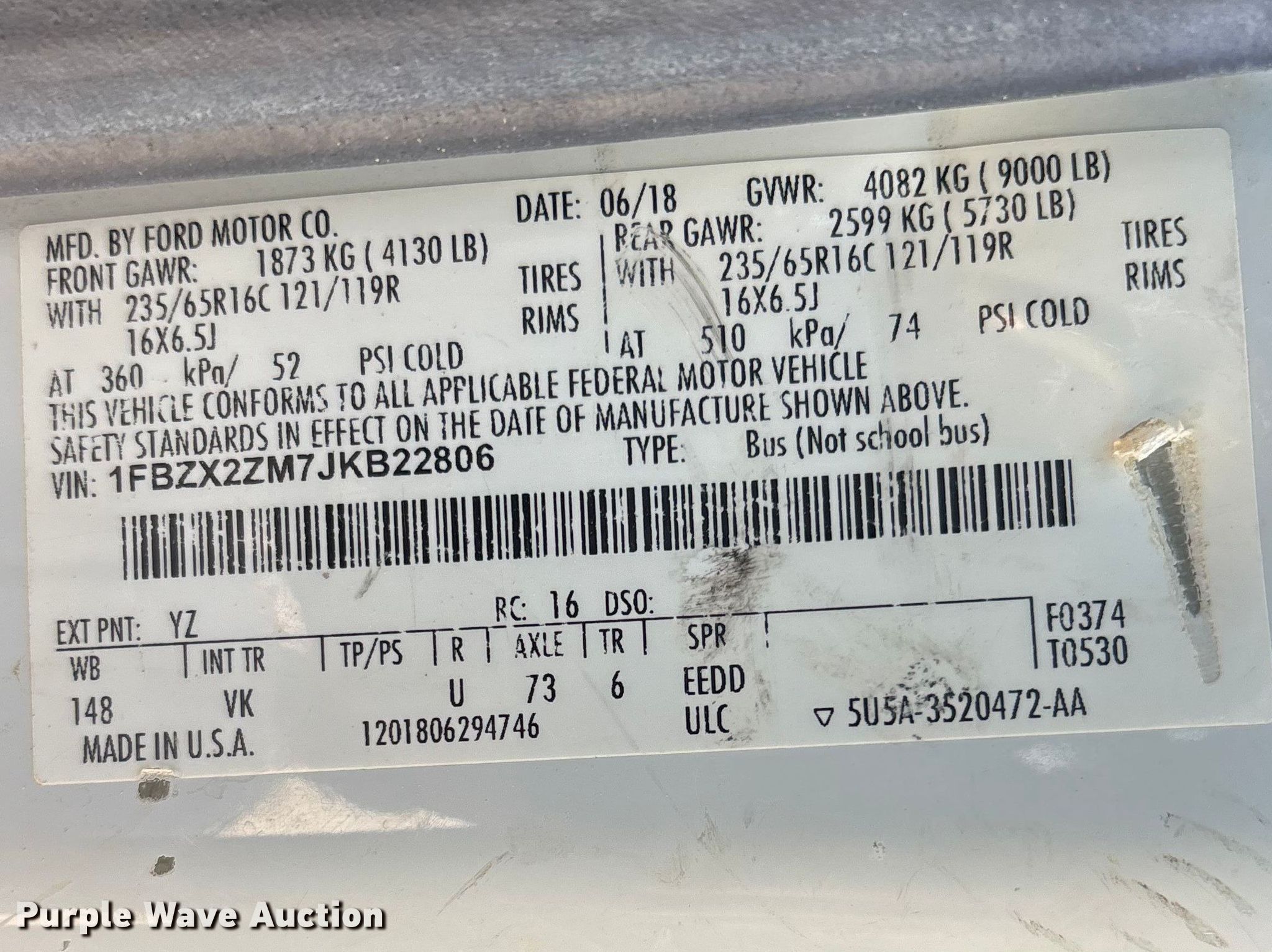 - VIN: 1FBZX2ZM7JKB22806