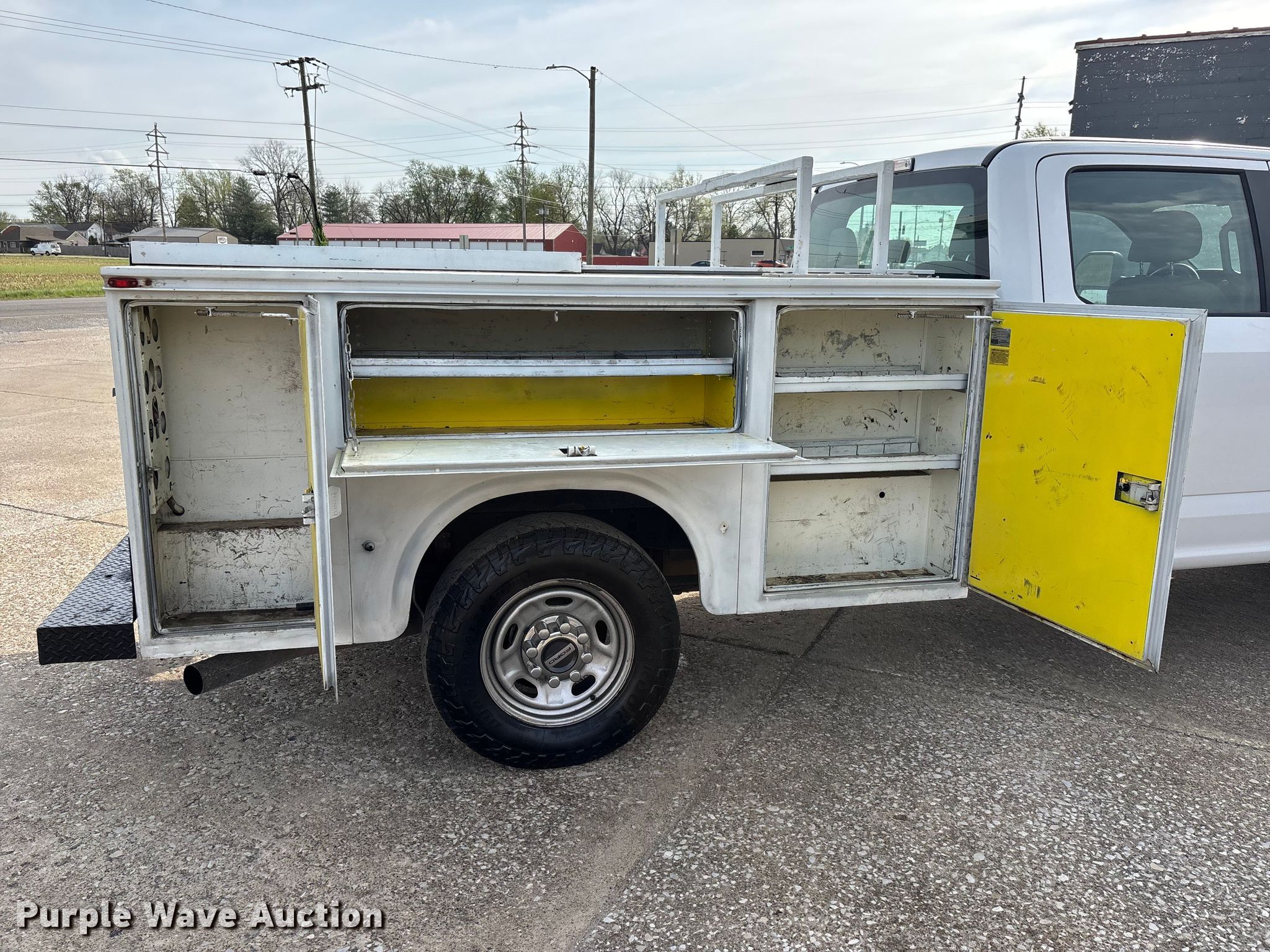 2019 Ford F250 Super Duty Crew Cab utility bed pickup truck. Miles: 159,323 on odometer, Miles or hours may vary, unit still in use, VIN: 1FT7W2A67KED56317. Engine Displacement: 6.2L, Cylinders: 8, Fuel type: Gas. Transmission Automatic. Interior AC, Heat, Heated mirrors, Power windows, Power locks, Cruise control, Auxiliary controls, Brake controller. Features Bed Utility bed, Knapheide 696J, Serial: 108643-2005S, Length: 8' 1", Width: 6' 7". Tires Size: 245/75R17. Notes Dash warning indicator: Check engine, TPMS. Kentucky title. Title distribution may be delayed up to 30 days from verification of funds. Roberts Asphalt. Owensboro, KY 42301
