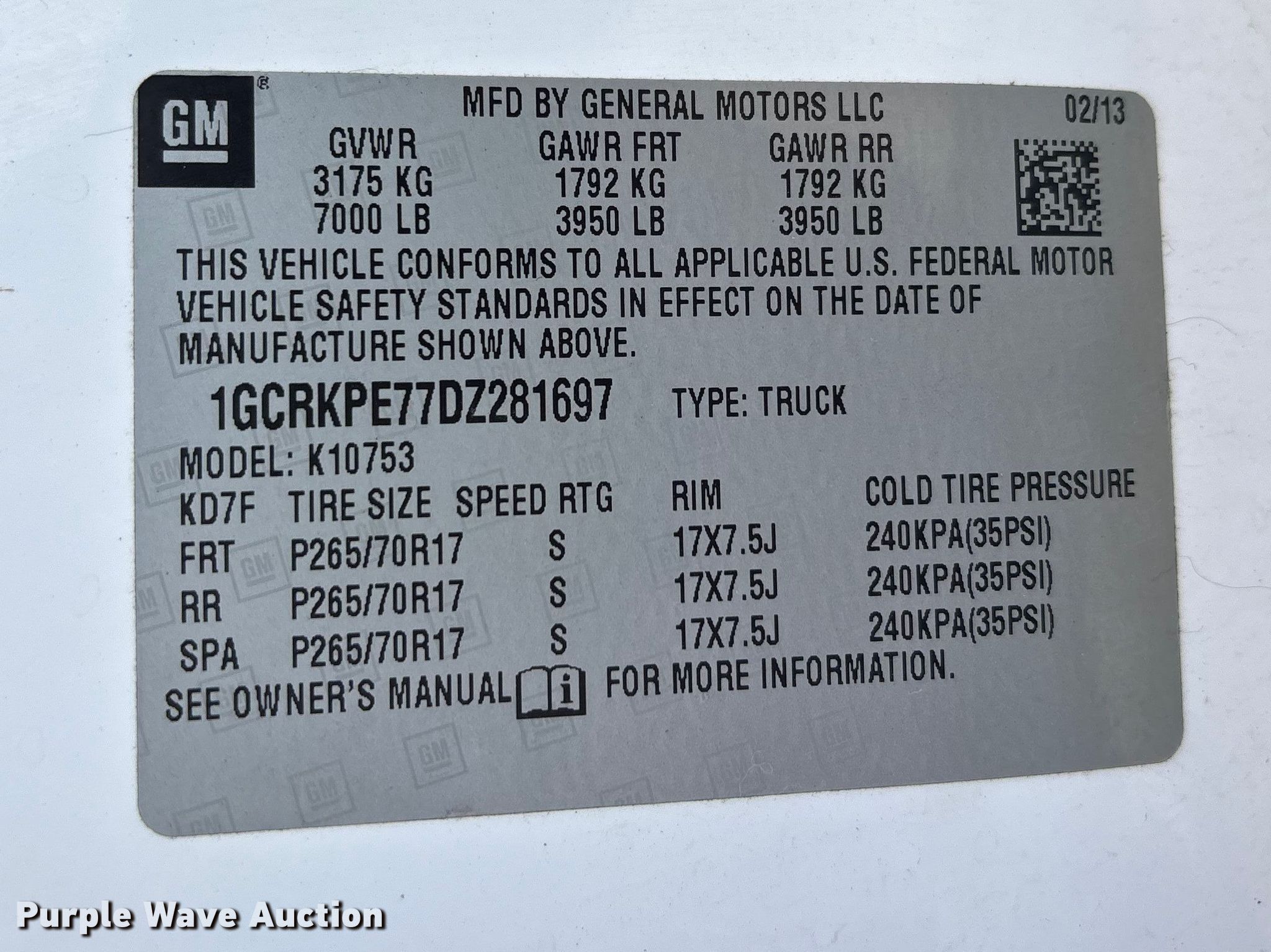 - VIN: 1GCRKPE77DZ281697
