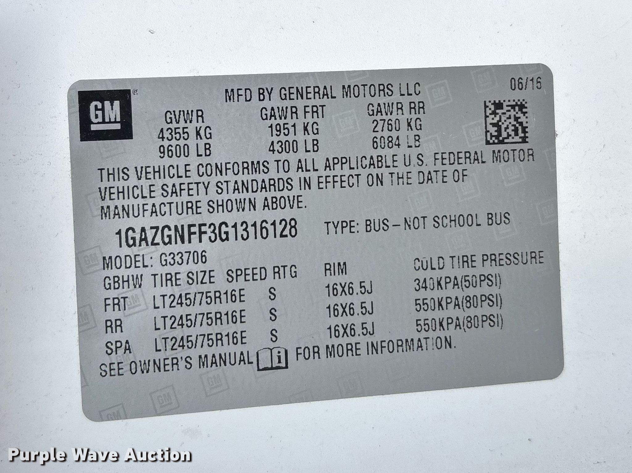 - VIN: 1GAZGNFF3G1316128
