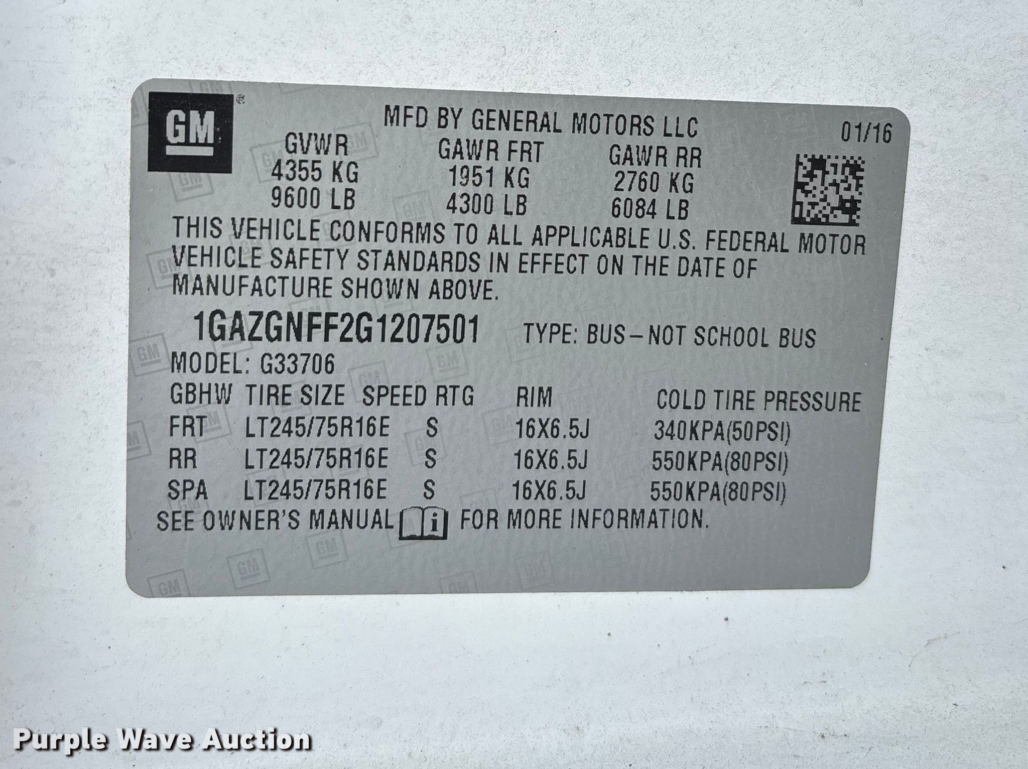 - VIN: 1GAZGNFF2G1207501