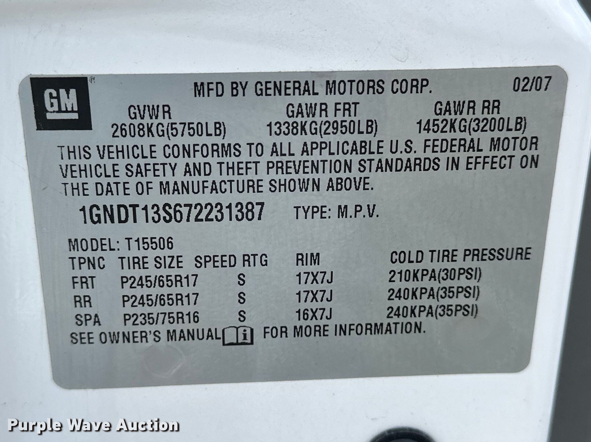 Purple Wave is selling a used Passenger Vehicle in Kansas. This item is a 2007 Chevrolet Trailblazer SUV with the following: Miles: 163,542 on odometer, VIN: 1GNDT13S672231387