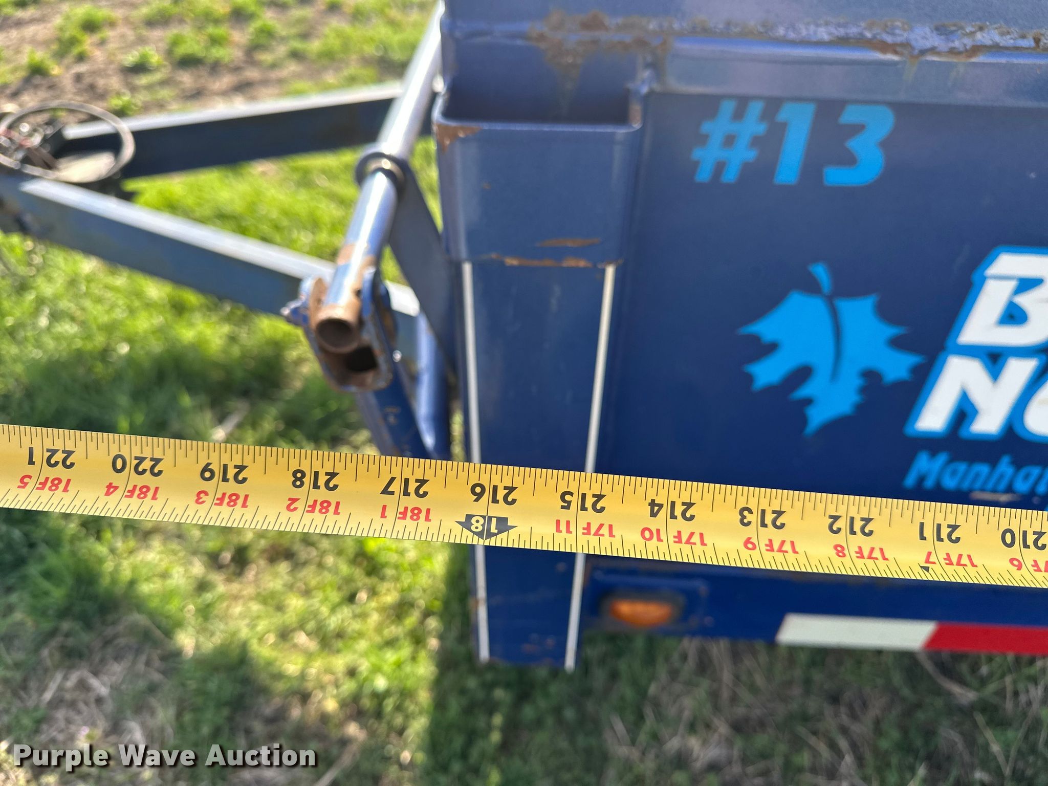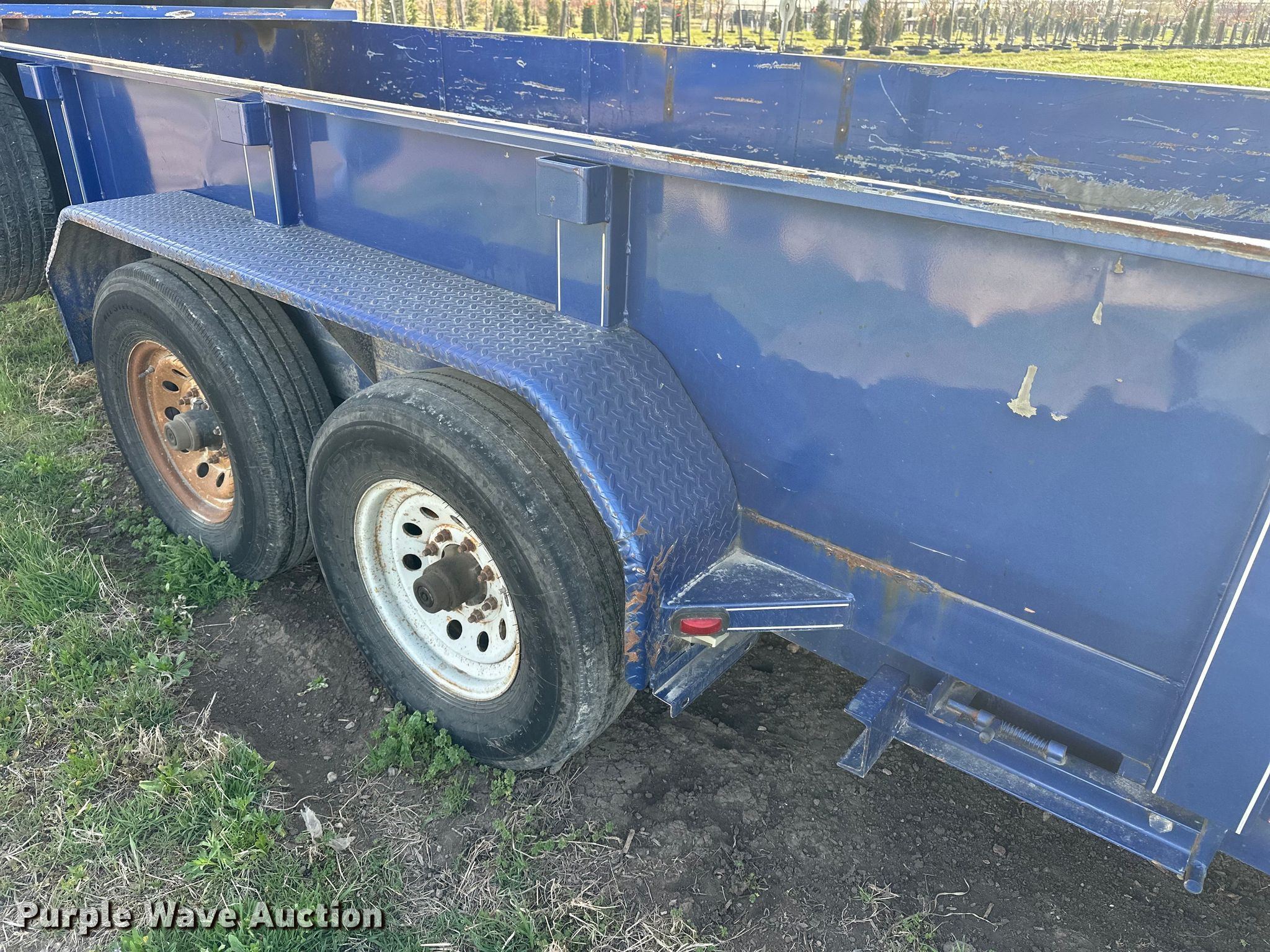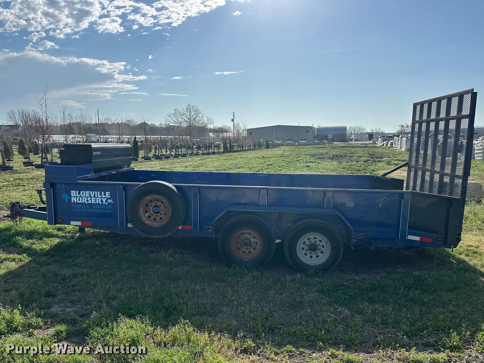 2015 Titan utility trailer. VIN: 4TGF18207F1073034, Unit #: 13. Dimensions Overall Length: 22', Width: 102", Deck Length: 18', Width: 82", Side height: 20", Tail length: 24', Ramps: Manual Length: 6'. Features Deck type: Wood. Chassis Hitch: Pintle, Landing gear: Single, Suspension: Torsion, Brakes: Electric, Axles: Tandem. Tires Steel wheels, Size: ST235/80R16. Kansas title. Title distribution may be delayed up to 14 days from verification of funds. Blueville Landscape. Manhattan, KS 66503