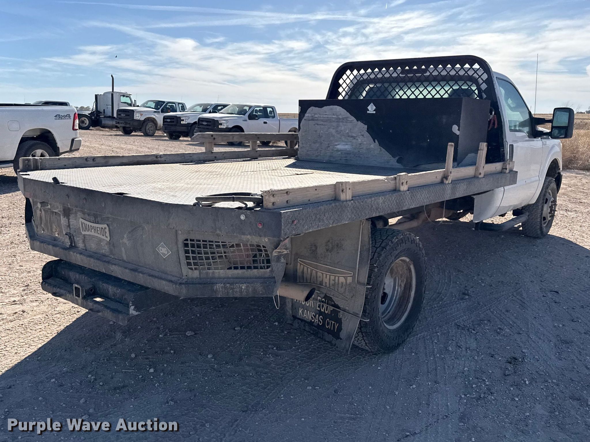 2016 Ford F350 Super Duty flatbed pickup truck. Miles: 219,769 on odometer, VIN: 1FDRF3H60GED28026, Unit #: 16301. Engine Displacement: 6.2L, Cylinders: 8, Fuel type: Gas, CNG. Transmission Automatic, Four wheel drive. Interior AC, Heat, Cruise control, Brake controller. Features Bed Flatbed, Knapheide, Length: 11' 6", Width: 96", Hitch: Gooseneck. Tires Size: 245/75R17. Notes Dash warning indicator: Check engine, Windshield chipped or cracked. Titles will be distributed after confirmation of payment and removal. Oklahoma title. Title distribution may be delayed up to 30 days from verification of funds. Seaboard Foods. Optima, OK 73945