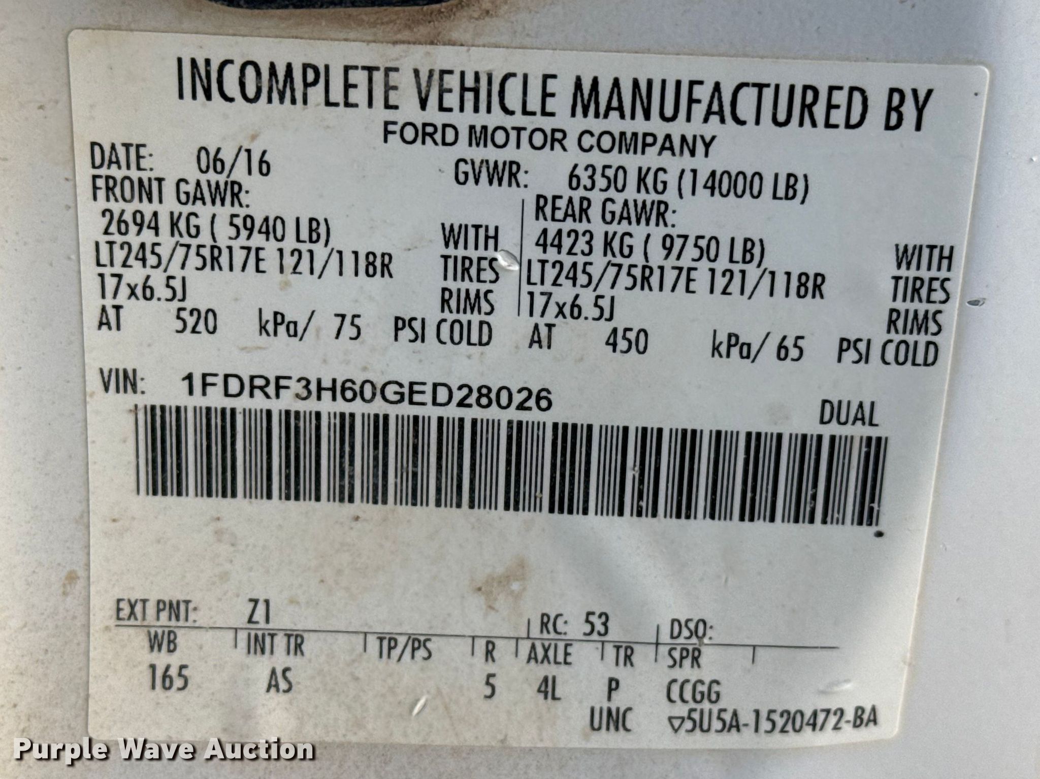 - VIN: 1FDRF3H60GED28026