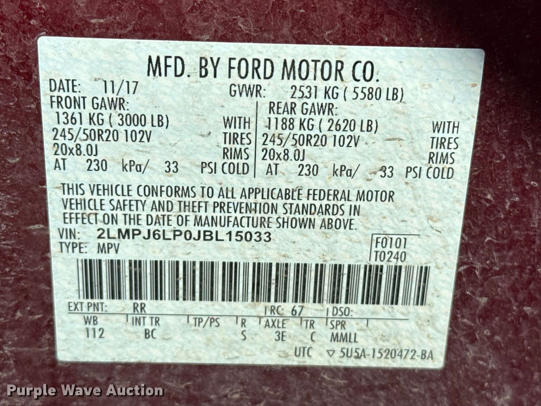 Purple Wave is selling a used Passenger Vehicle in Oklahoma. This item is a 2018 Lincoln MKX SUV with the following: Miles: 78,688 on odometer, VIN: 2LMPJ6LP0JBL15033