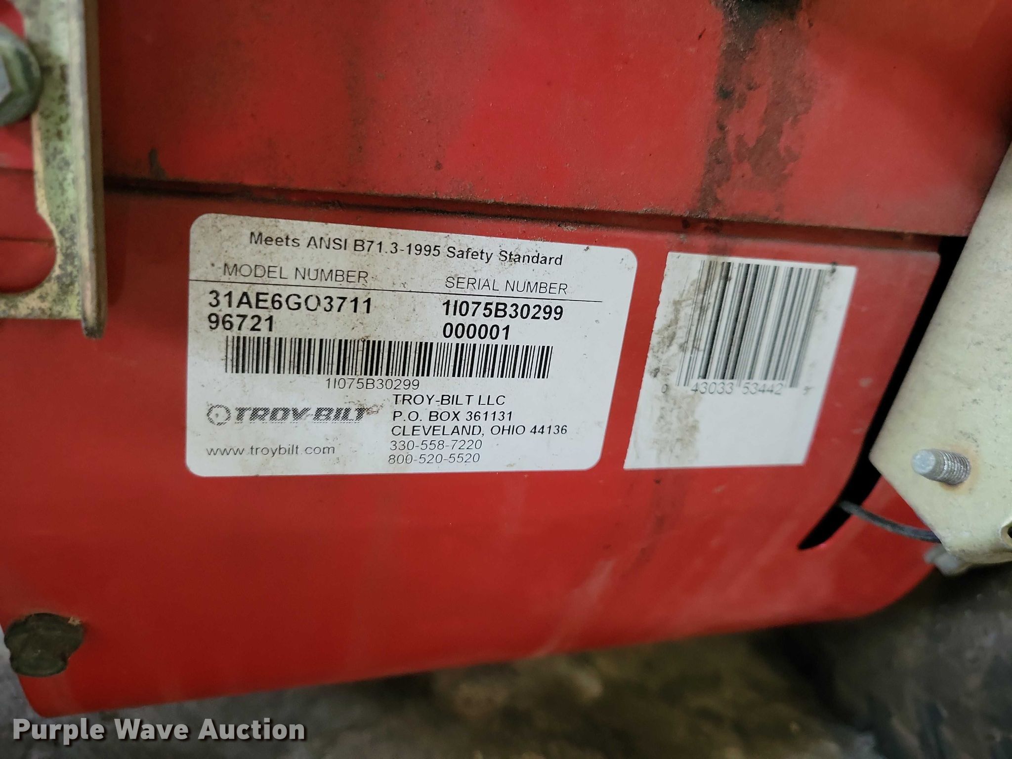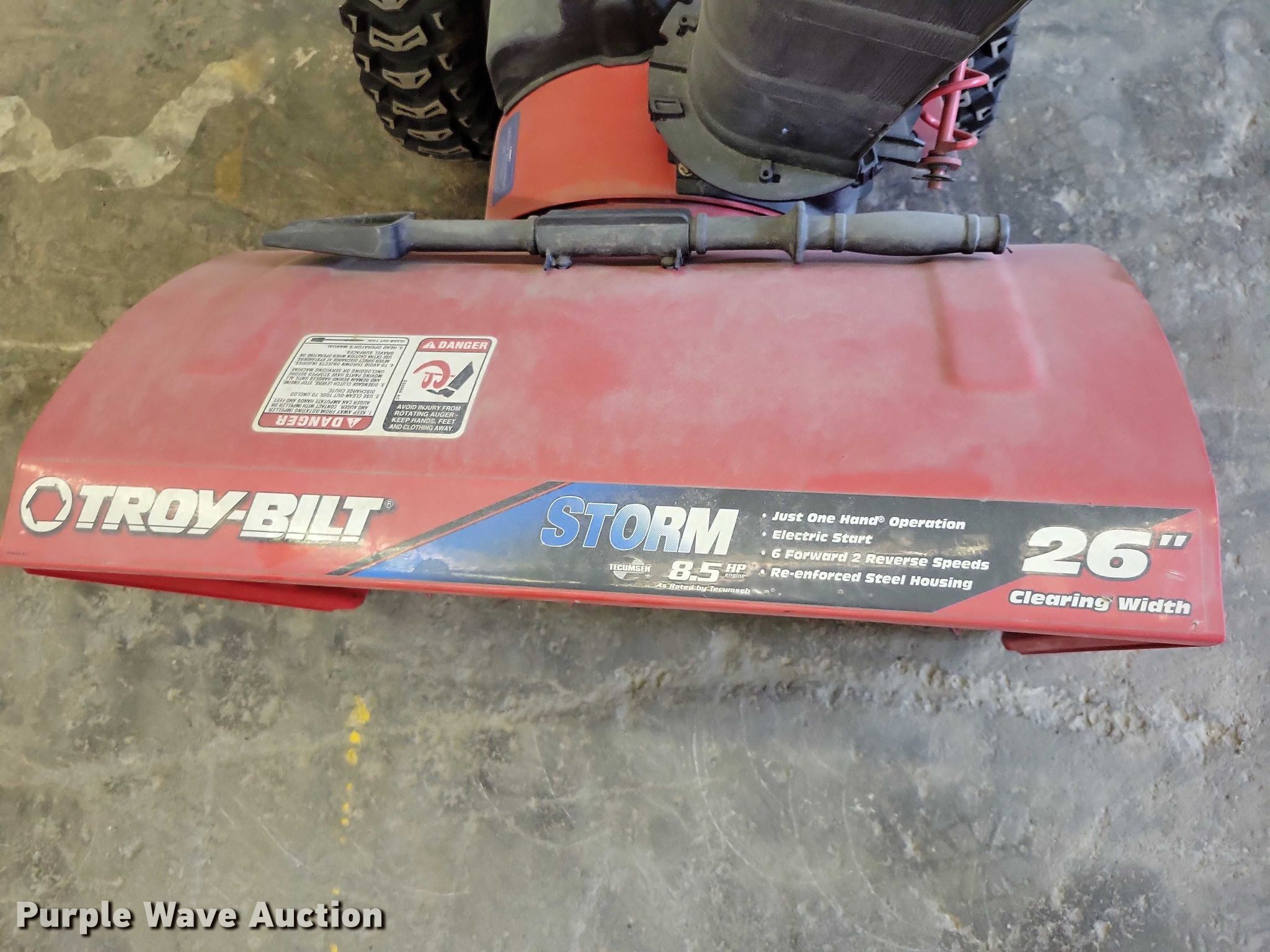 Purple Wave is selling a used Lawn and Garden in Iowa. This item is a Troy-Bilt Storm snow blower with the following: Serial: 1I075B30299, Width: 26"