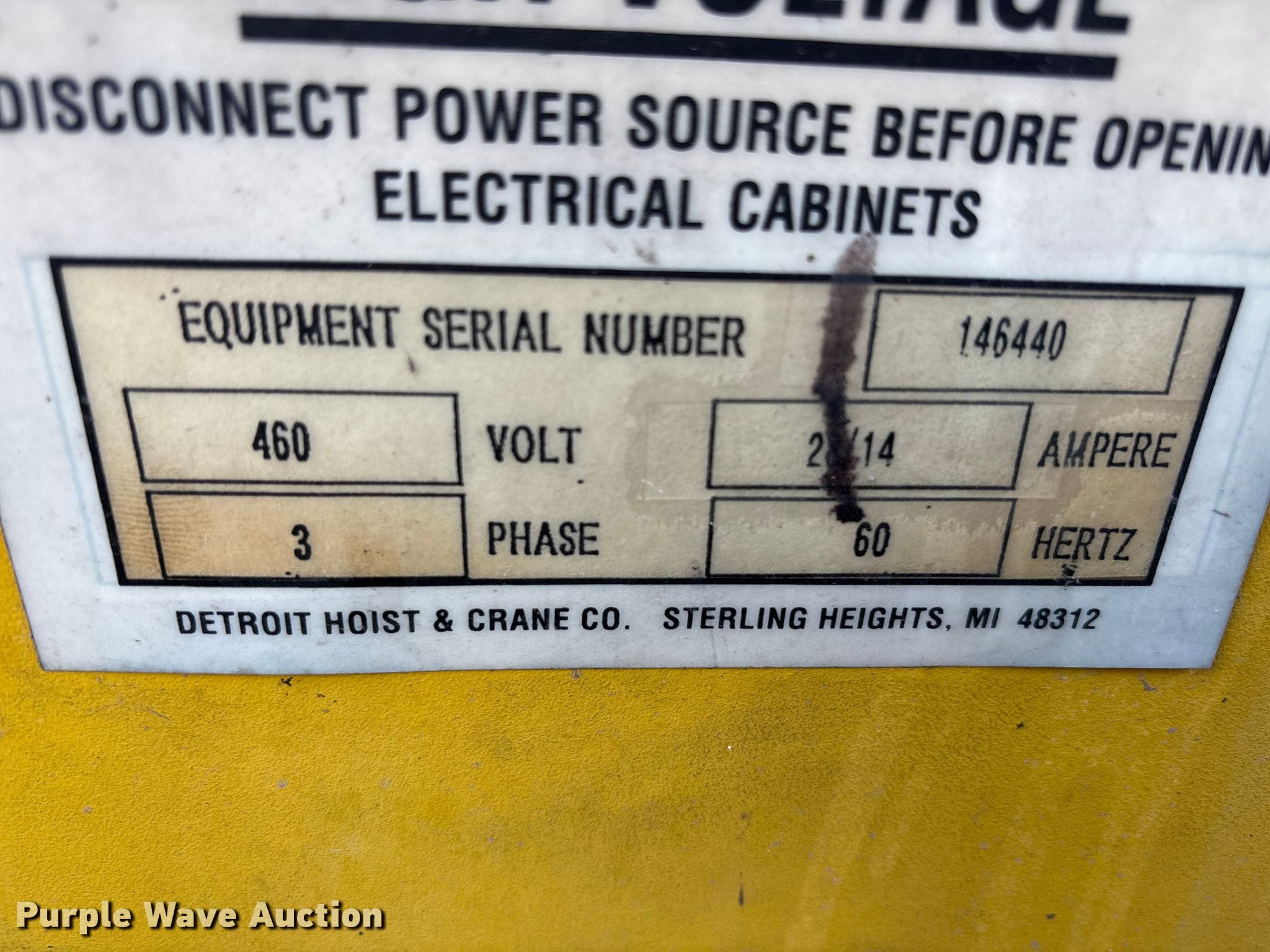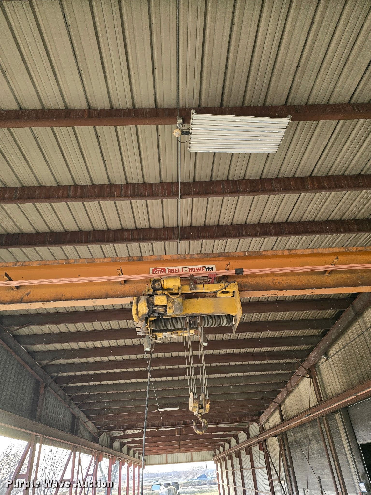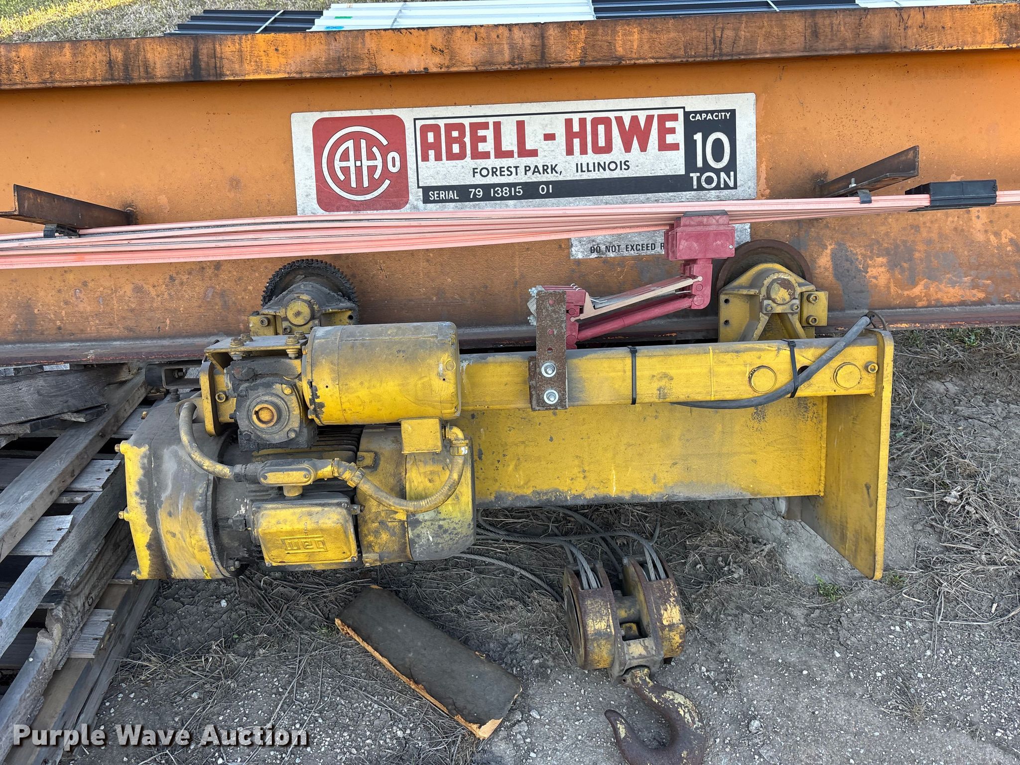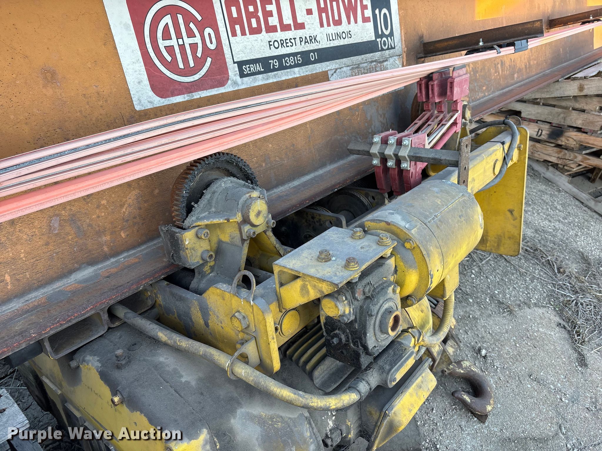 Purple Wave is selling a used Overhead or Straddle Crane in Nebraska. This item is a Abel-Howe overhead crane with the following: Serial: 146440, Capacity: 10 ton, Remote control, Phase: Three, (2) rail guides, Length: Approx. 33' 6"