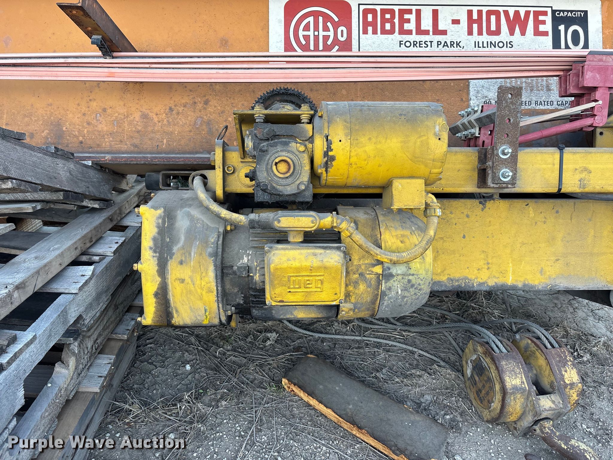This Abel-Howe overhead crane will sell to the highest bidder regardless of price.