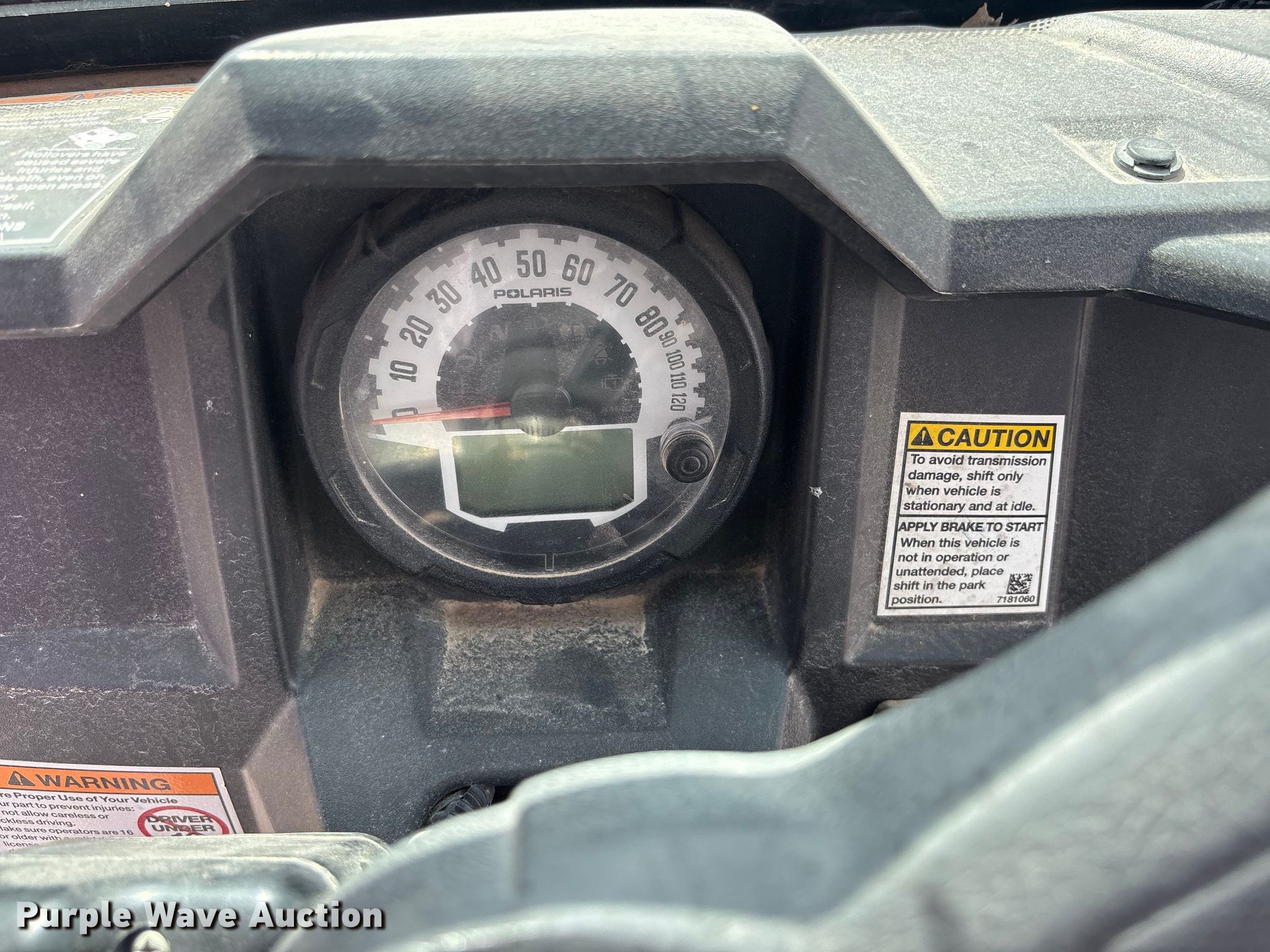 2015 Polaris Ranger crew 570 utility vehicle. Miles: 12,830 on odometer, VIN: 3NSRNA577FE367500. Engine Displacement: 570cc, Cylinders: 1, Fuel type: Gas, Electric start. Transmission Automatic. Chassis Four wheel drive/ All wheel drive. Operators station OROPS, Canopy. Features Winch, Grille guard, Receiver hitch, Dump bed 32" L x 46" W, Dump bed type: Manual. Tires Front: 25x8.00-12, Rear: 25x11.00-12. Notes Tire chains included. Transfer of ownership documentation will be a bill of sale. Axtell, KS 66403