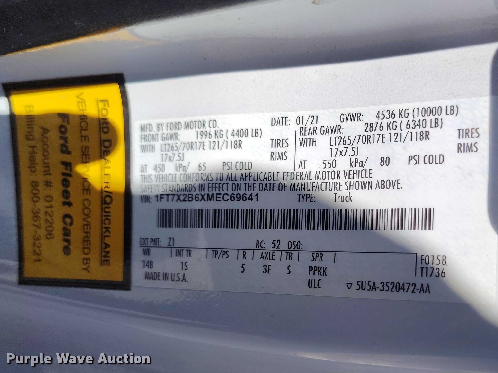 Purple Wave is selling a used 3/4 or 1 Ton Pickup or Van in Colorado. This item is a 2021 Ford F250 Super Duty Ext. Cab pickup truck with the following: Miles: 147,699 on odometer, Hours: 7,108 on meter, VIN: 1FT7X2B6XMEC69641, Unit #: 02.854