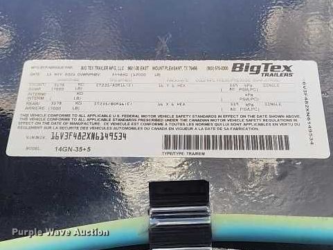 Purple Wave is selling a used Equip. Trailer in Colorado. This item is a 2022 Big Tex 14GN-35+5 equipment trailer with the following: VIN: 16V3F482XN6149534