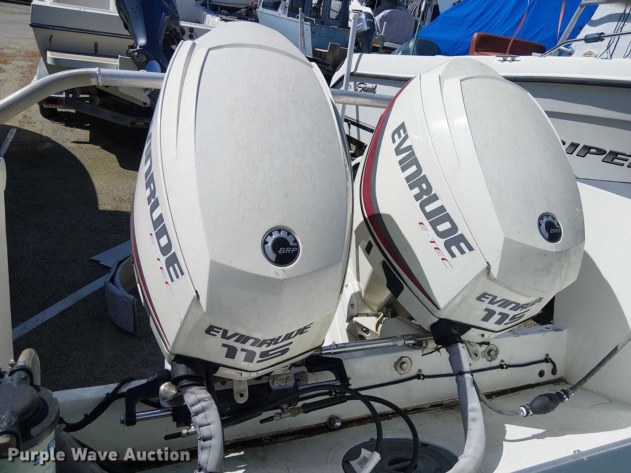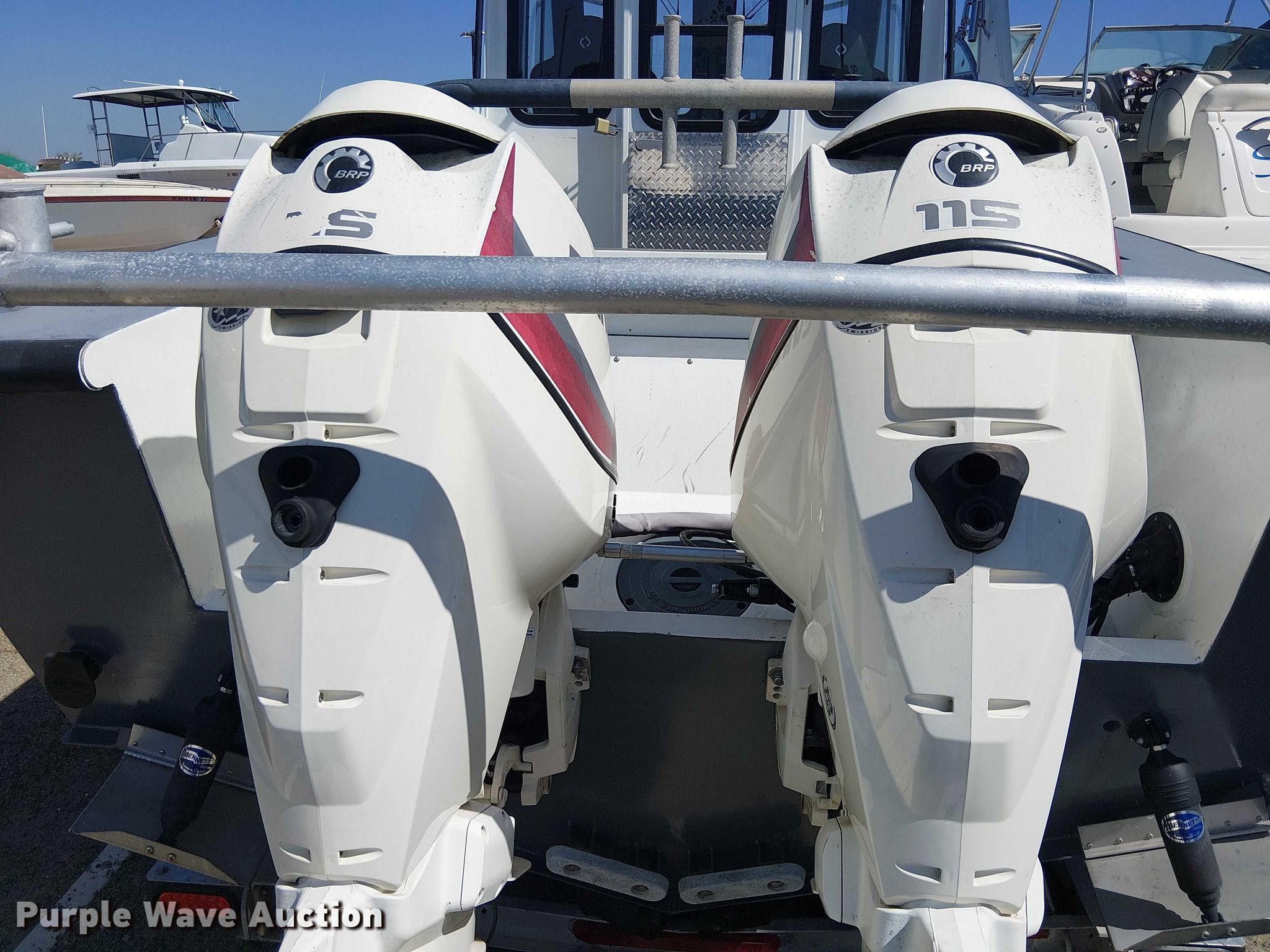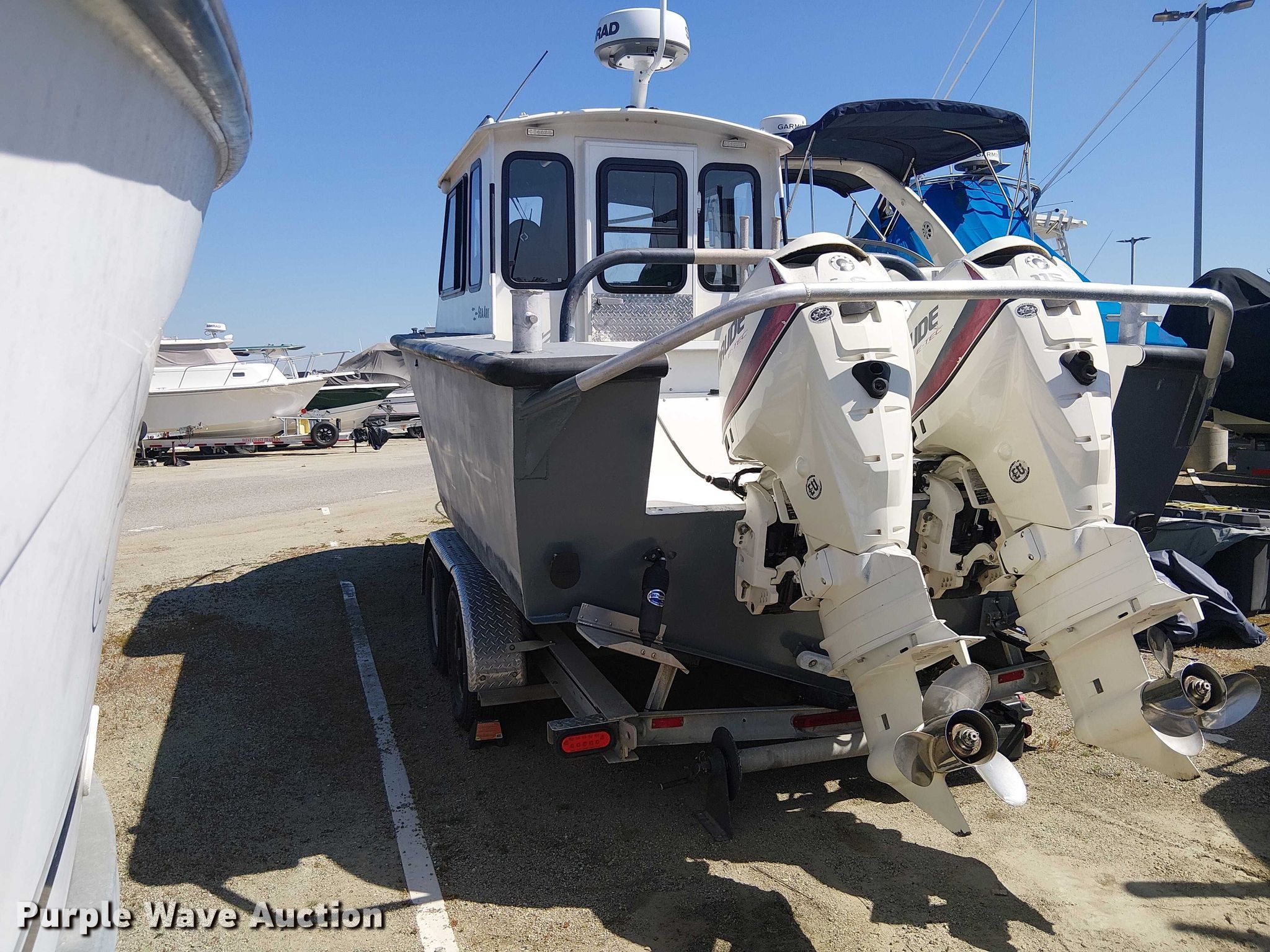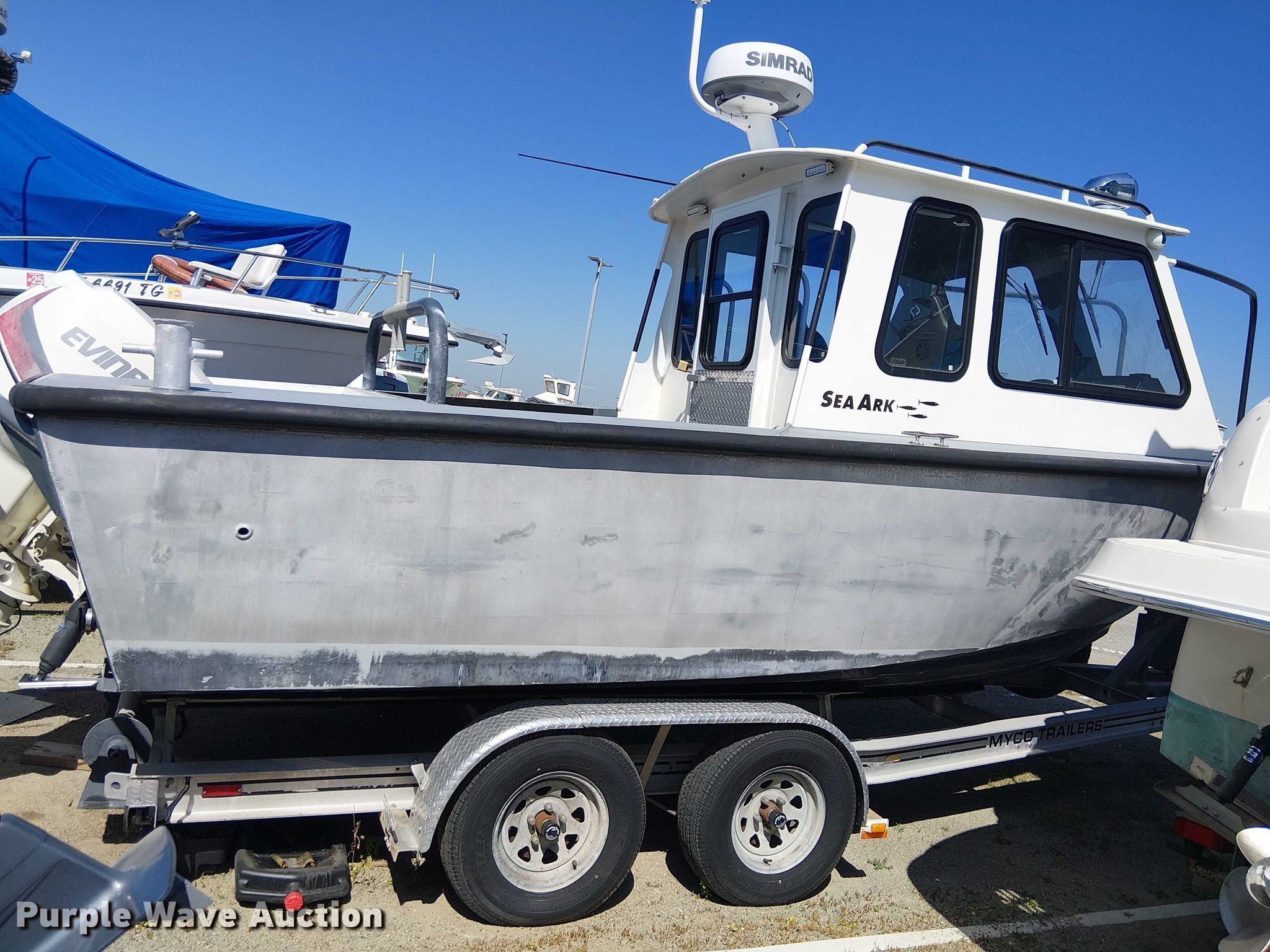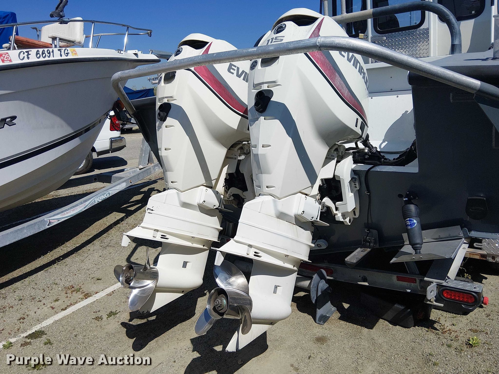 1992 SeaArk boat. Length: 21', Hull ID: SAMA0424D393. Engine Engine type: Outboard, 2014 BRP US Inc. E115DCXAFB, Serial: 5409668, Displacement: 1.727L, Fuel type: Gas, Outdrive Propeller: Stainless steel. Second engine Engine type: Outboard, 2014 BRP US Inc. E115DPXAFB, Serial: 5411519, Displacement: 1.727L, Fuel type: Gas, Outdrive Propeller: Stainless steel. Operators station Capacity Person: 4. Trailer 1992 Myco, VIN: 1M9BS212XNA349911, Overall length: 23', Overall width: 106", GVWR: 7,000 lbs, Ball hitch size: 2 5/16", Axles: Single, Tire size: ST225/75R15. Boat: California title. Title distribution may be delayed up to 14 days from verification of funds. Trailer: Transfer of ownership documentation will be a bill of sale. Outboard engines: Transfer of ownership documentation will be a bill of sale. Huntington Beach, CA 92649
