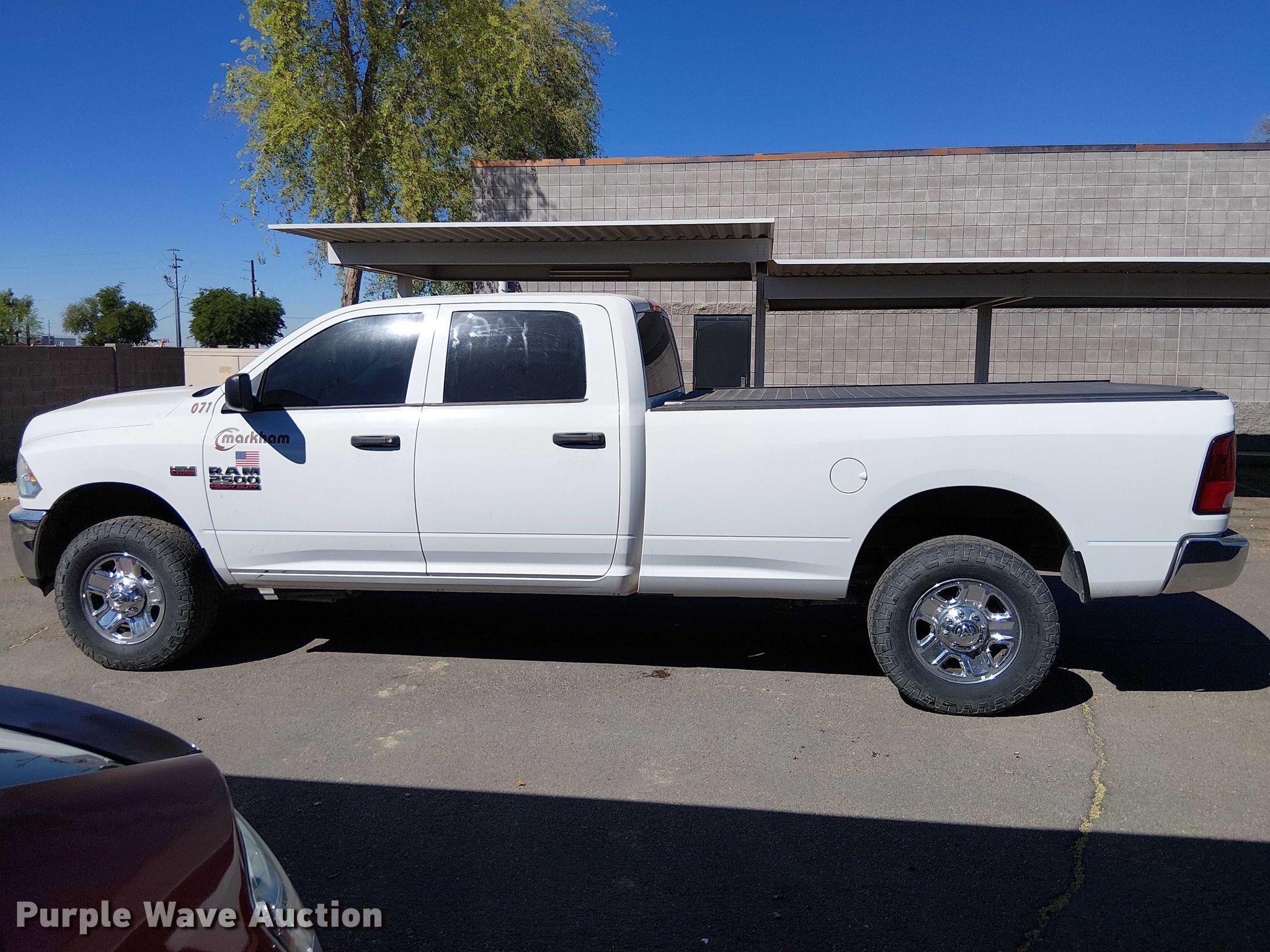 2018 RAM 2500 Crew Cab pickup truck. Miles: 168,033 on odometer, VIN: 3C6UR5HJ3JG359459, Unit #: 900071. Engine Displacement: 6.4L, Cylinders: 8, Fuel type: Gas. Transmission Automatic, Four wheel drive. Interior AC, Heat, Power windows, Power locks, Cruise control, Backup camera. Tires Size: LT275/70R18. Notes Jump start required during on-site data collection. Arizona title. Title distribution may be delayed up to 30 days from verification of funds. Markham Holdings. Phoenix, AZ 85027