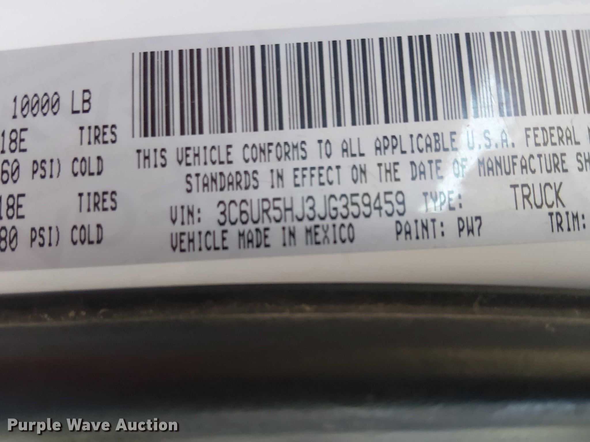 - VIN: 3C6UR5HJ3JG359459