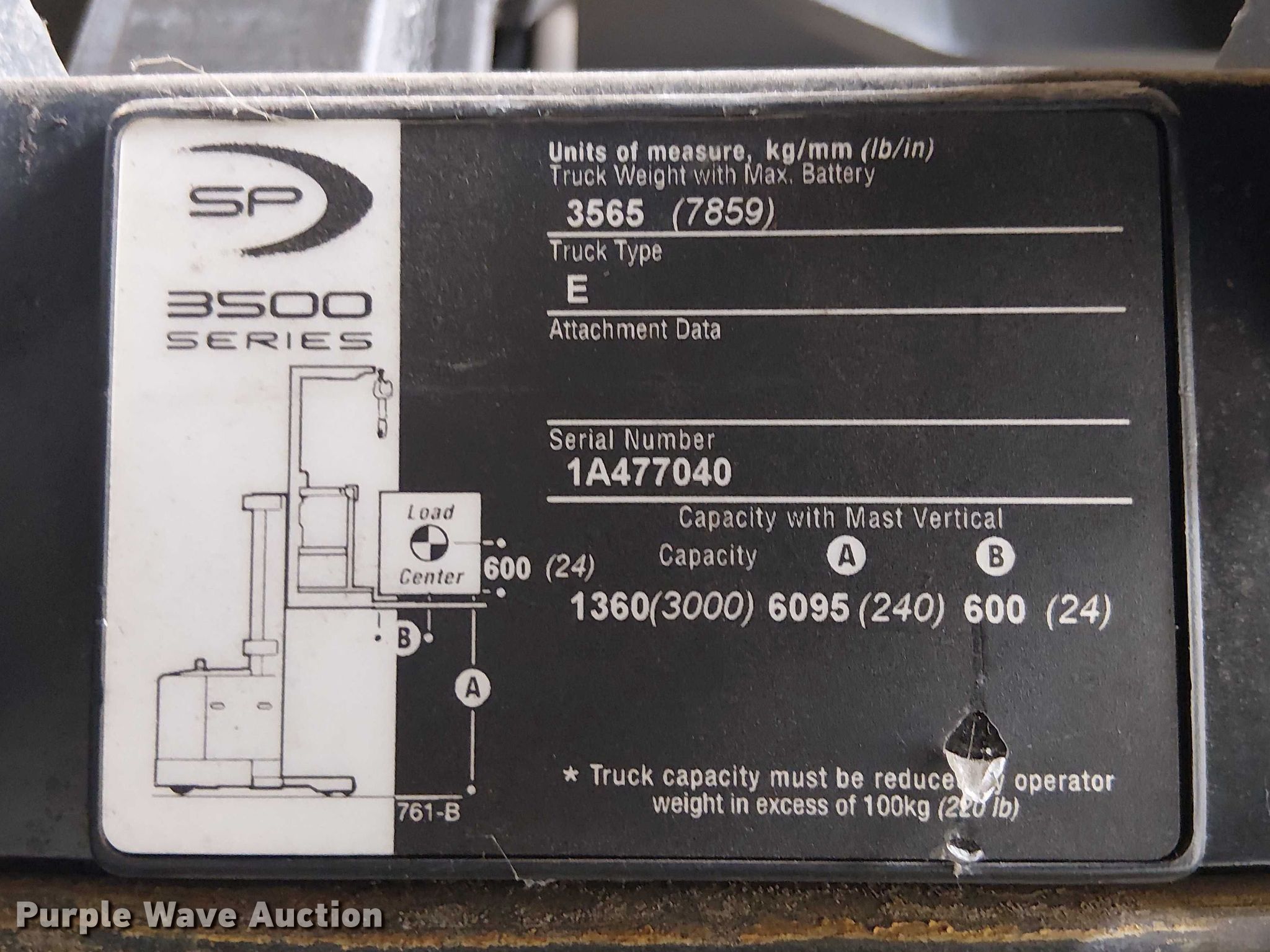 Purple Wave is selling a used Warehouse Forklift in Arizona. This item is a 2016 Crown SP3520-30 order picker with the following: Hours: 10,749 on meter, Miles or hours may vary, unit still in use, Serial: 1A477040, Unit #: SFS3142