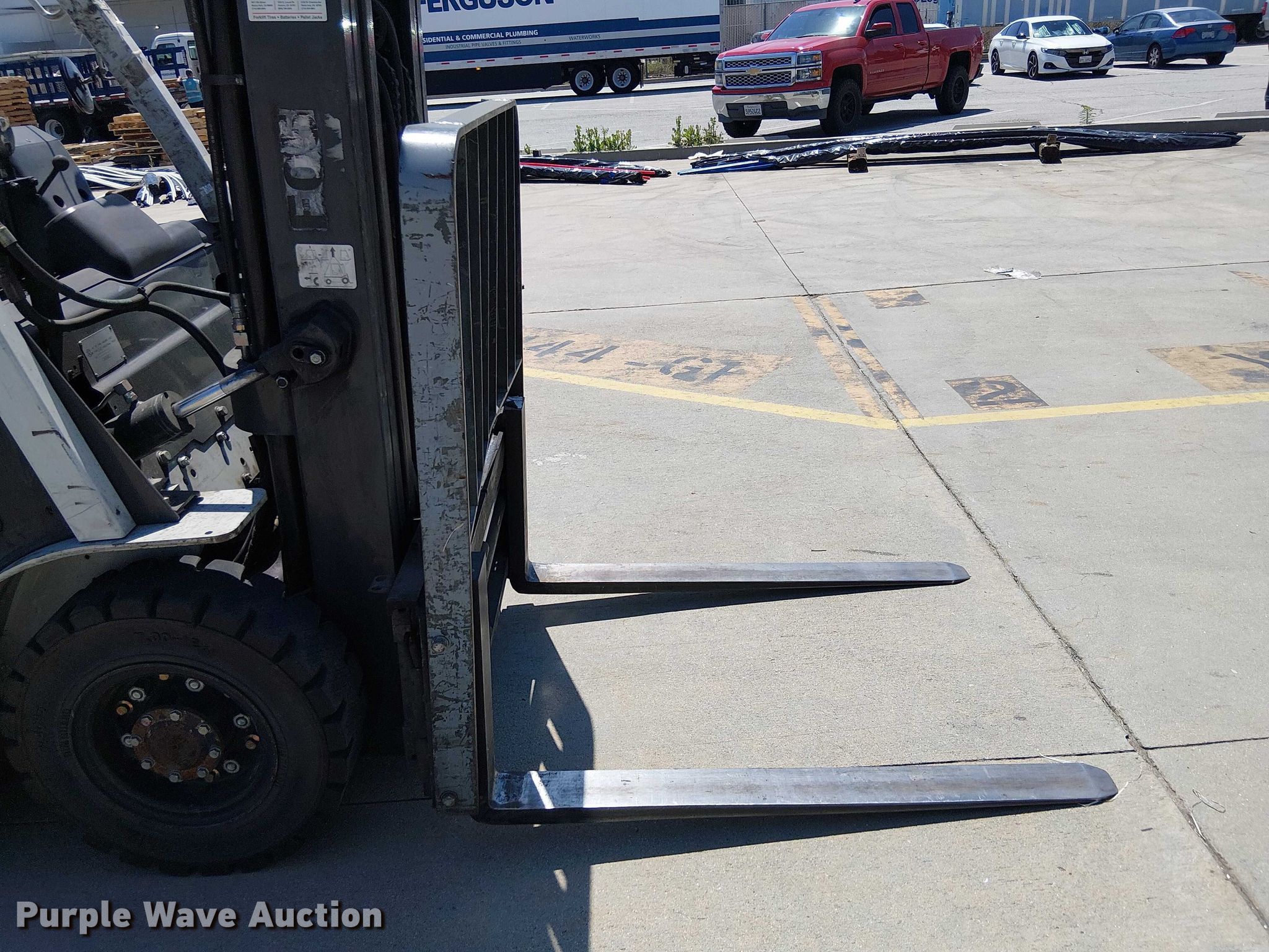 2017 UniCarriers PF50 forklift. Hours: 13,076 on meter, Miles or hours may vary, unit still in use, Serial: P1F2-9H22042, Unit #: SFS3131. Engine GCT K21L, Displacement: 2.1L, Cylinders: 4, Fuel type: LPG LP bottle: Not included. Transmission Automatic. Operators station OROPS. Features Maximum lift capacity: 3,325 lbs, Maximum lift height: 203", Collapsed mast height: 88", Mast stages: 3, Side shift, Mast tilt, Fork positioner, Fork length: 48". Tires Front: 7.00-12, Rear: 6.00-9, Solid. Ferguson. Pomona, CA 91766
