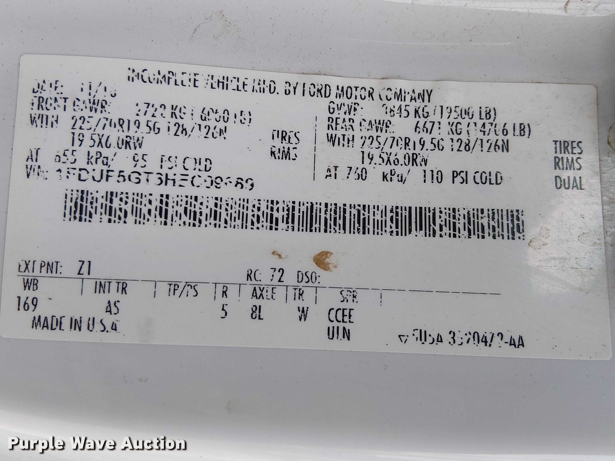 - VIN: 1FDUF5GT3HEC09689
