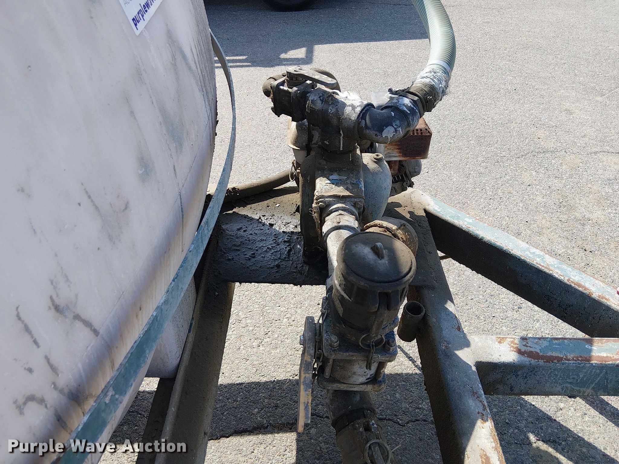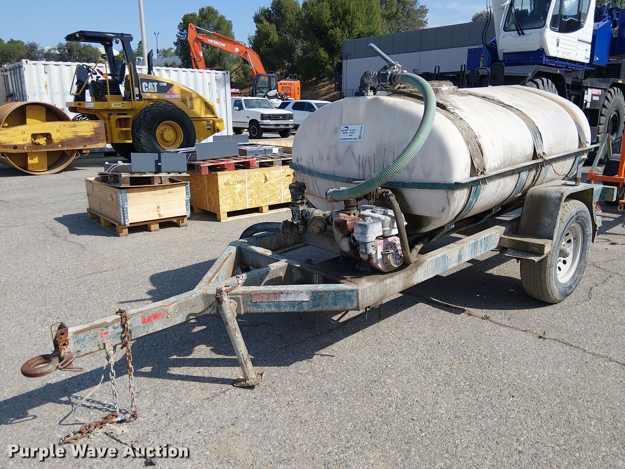 Tank trailer. Dimensions. Overall Length: 15', Width: 6'. Chassis Hitch: Pintle, Landing gear: Single, Suspension: Spring, Brakes: Electric. Features Poly tank, Capacity: 500 gallons, Honda water pump, Hose diameter: 2 1/2". Tires Steel wheels, Size: ST235/80R16. This is worksite support equipment and will not come with a title. Transfer of ownership documentation will be a bill of sale. Guy F. Atkinson ,LLC. Corona, CA 92879