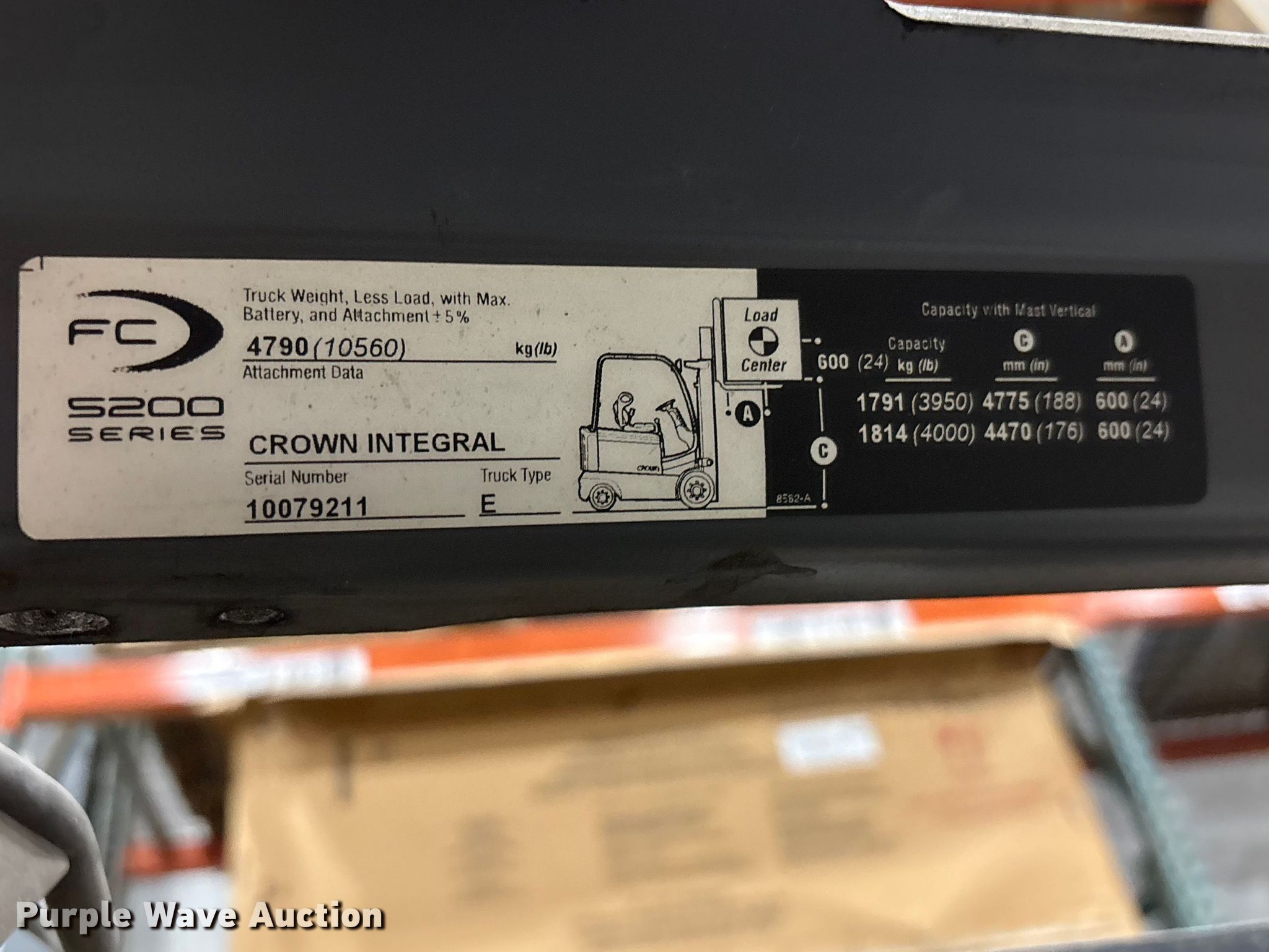 Purple Wave is selling a used Cushion Tire or Pneumatic Forklift in Alabama. This item is a 2018 Crown FC5214-40 forklift with the following: Hours: 8,536 on meter, Miles or hours may vary, unit still in use, Serial: 10079211, Unit #: SFS3223