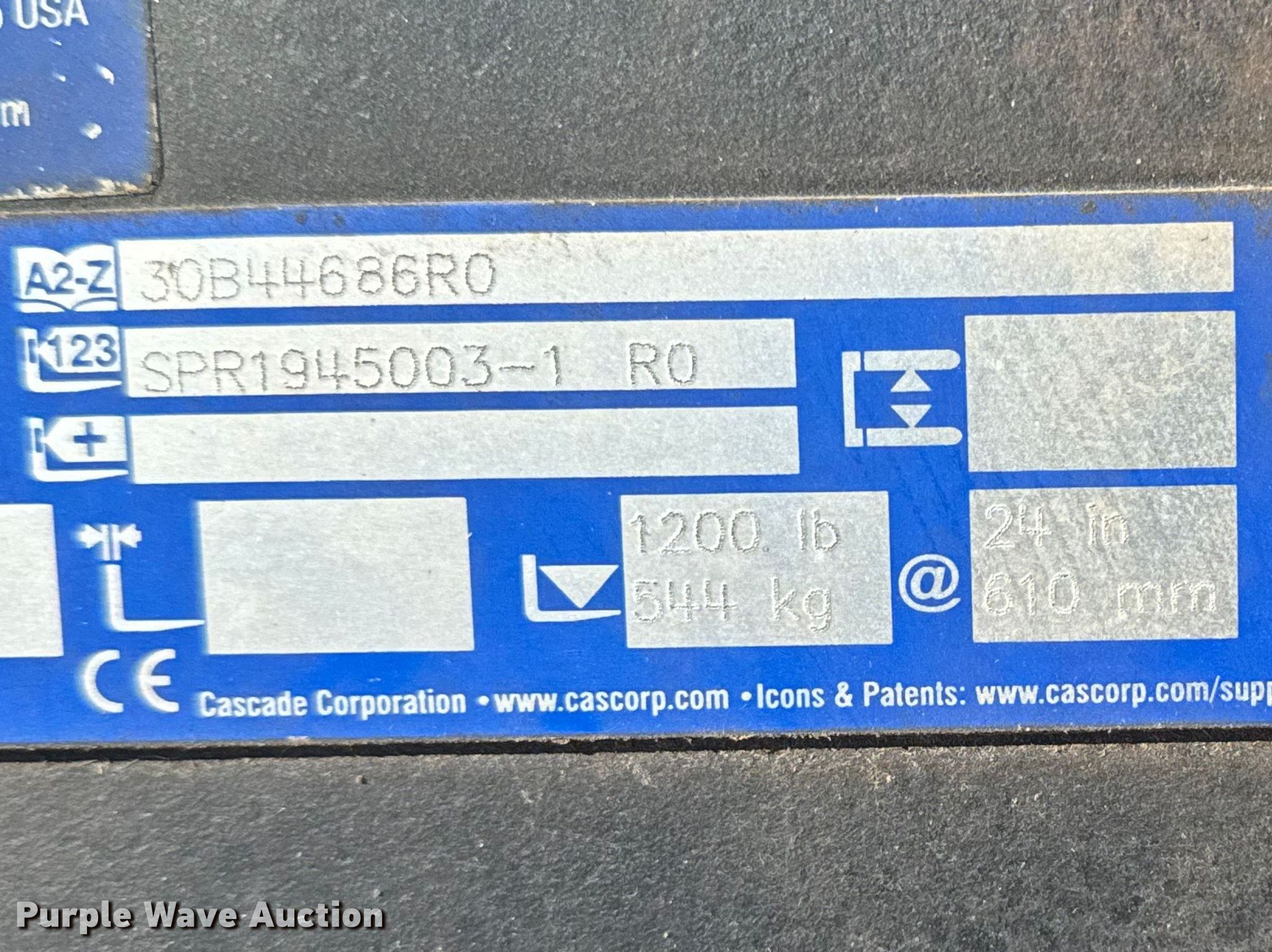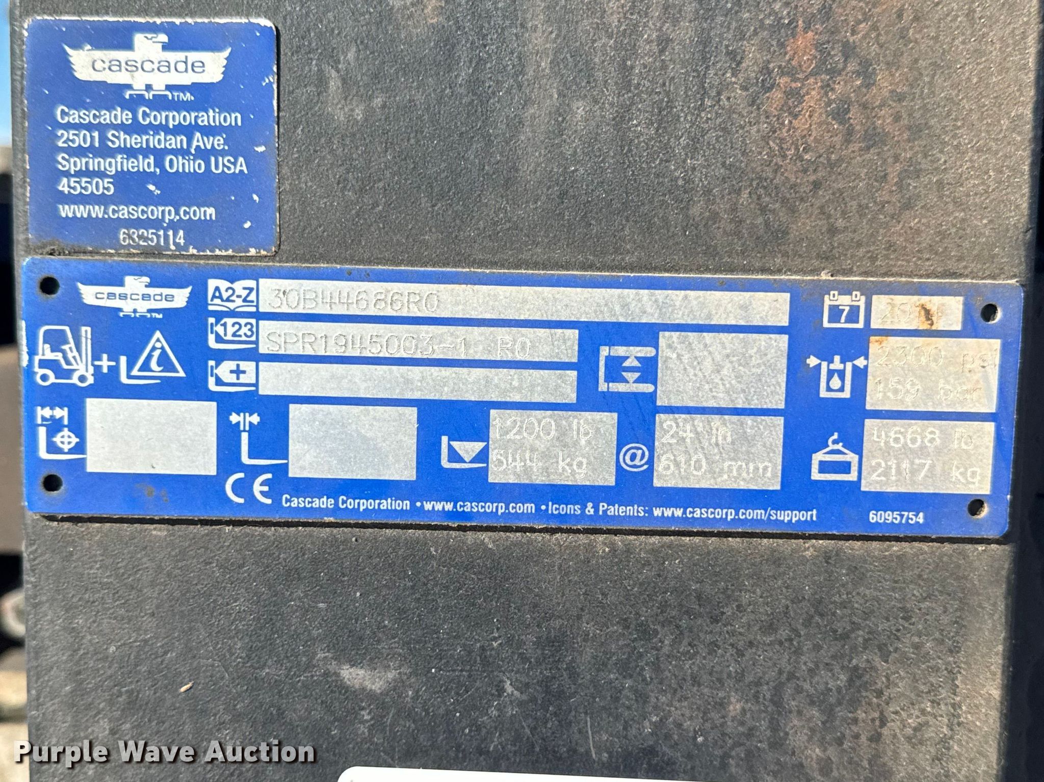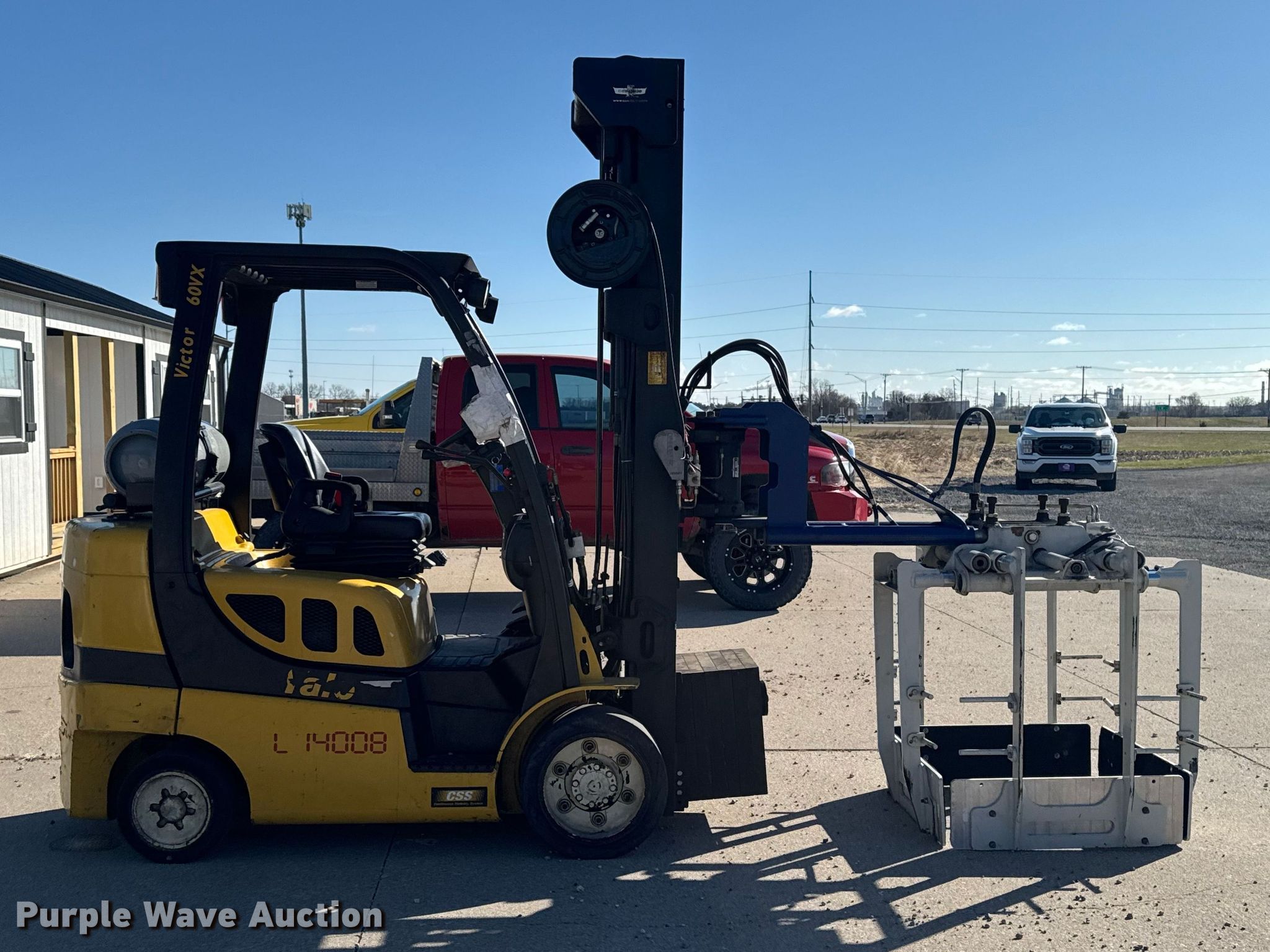 Yale GLC060VXNVSV113 forklift. Hours: 18,512 on meter, Serial: B910V02321M. Engine Cylinders: 4, Fuel type: LPG LP bottle: Included. Transmission Powershift, 1F - 1R. Operators station OROPS. Features Maximum lift capacity: 1,200 lbs, Maximum lift height: 78", Mast stages: 2, Cascade Swinging Layer Picker 30B-LPD-B100. Tires Front: 21x8x15, Rear: 16x5x10.5. Notes Warning indicator: Check Engine, Fault code: 522660-0. Muscatine, IA 52761
