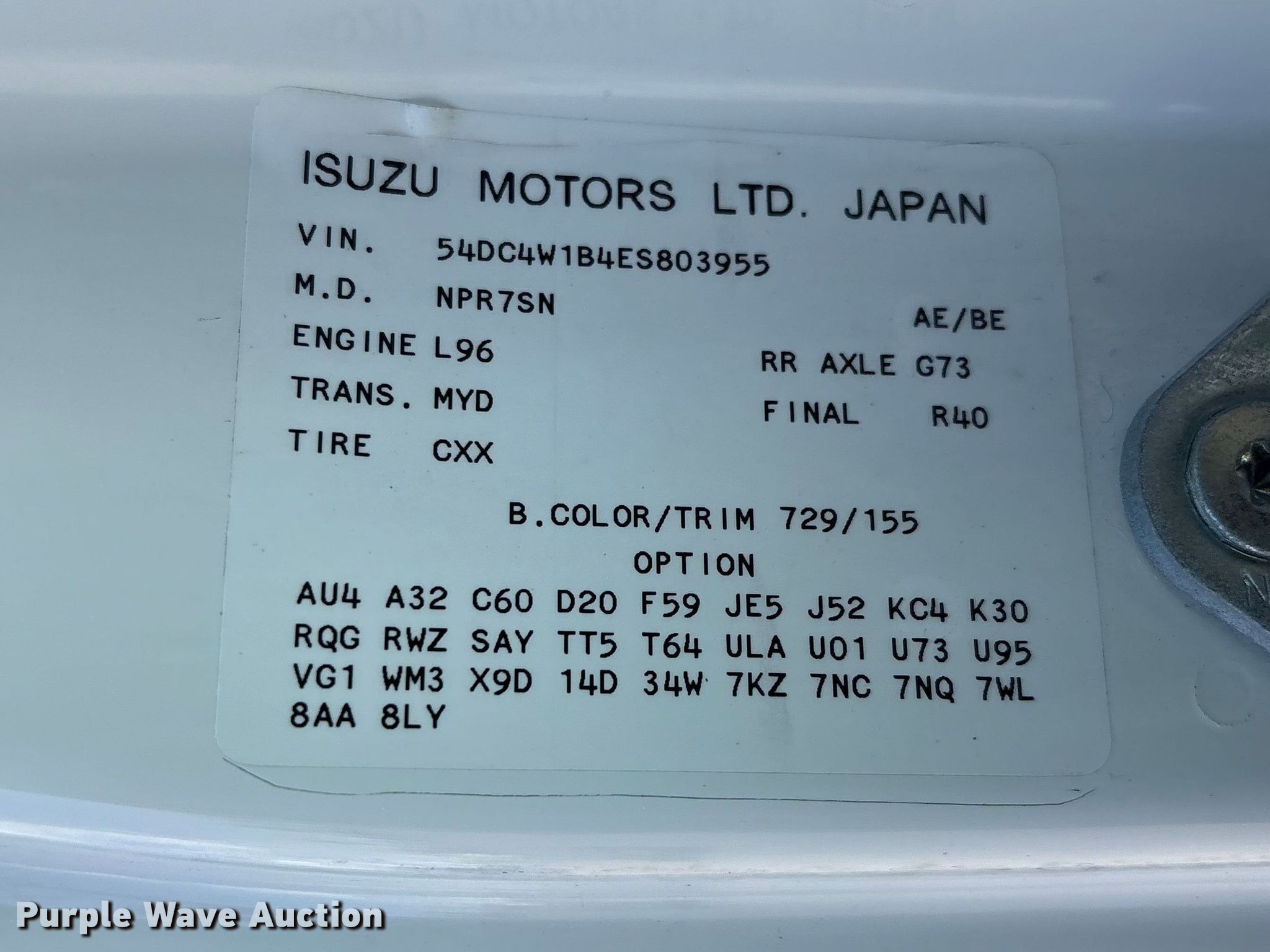Purple Wave is selling a used Box Truck in Oklahoma. This item is a 2014 Isuzu NPR HD box truck with the following: Miles: 108,992 on odometer, VIN: 54DC4W1B4ES803955