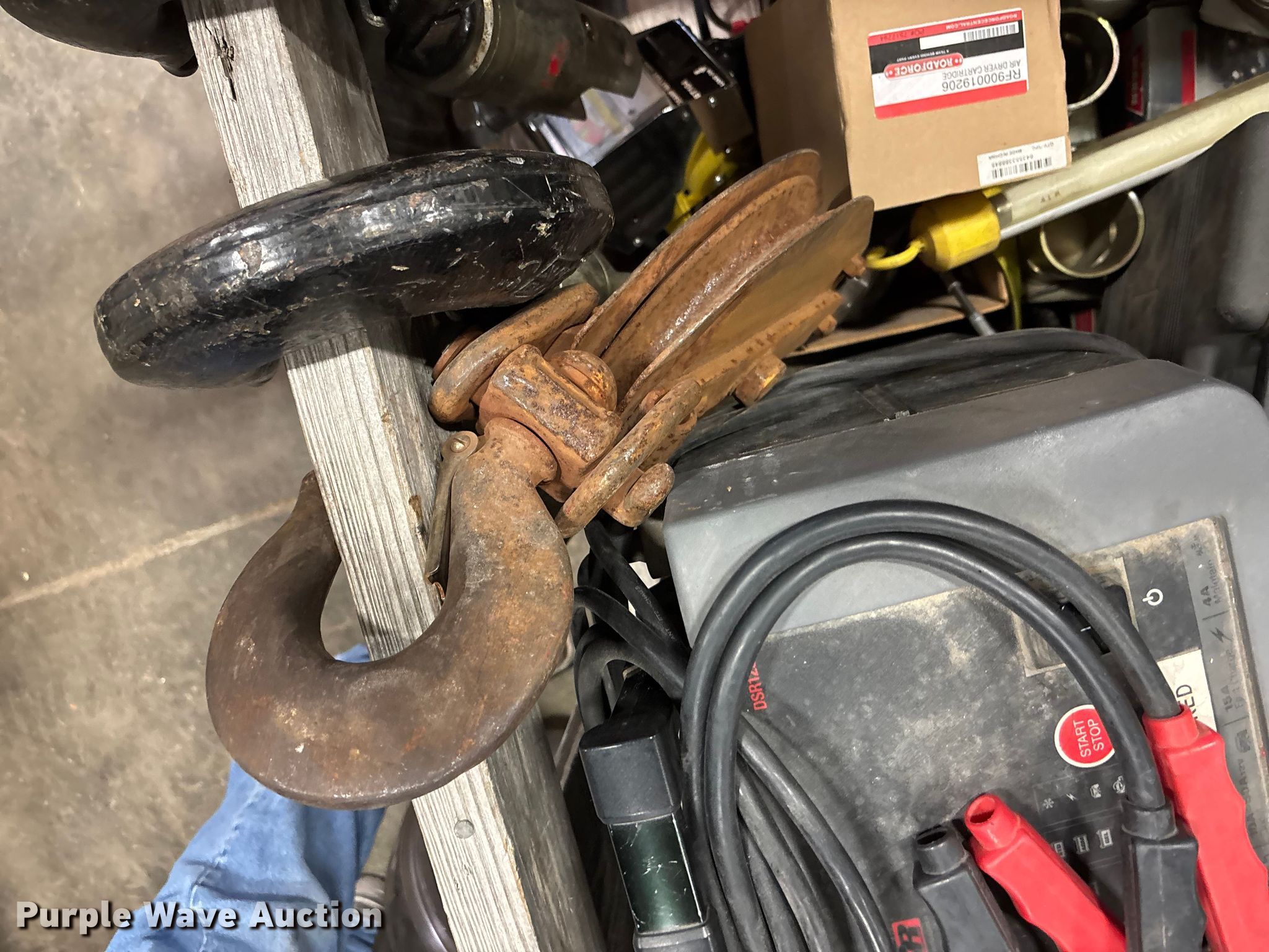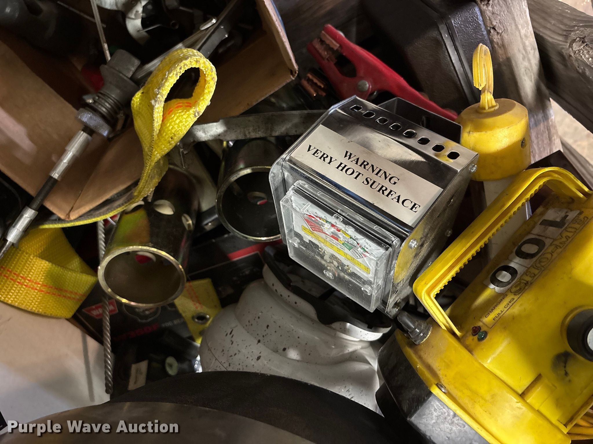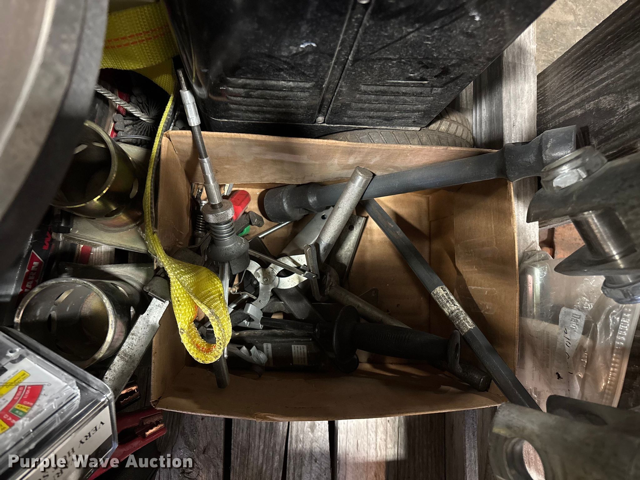 Purple Wave is selling a used Tools in Missouri. This item is a Tools with the following: Snatch blocks, Lights, Tools, Truck parts, Battery charger, Battery charger issues, Items in background not included