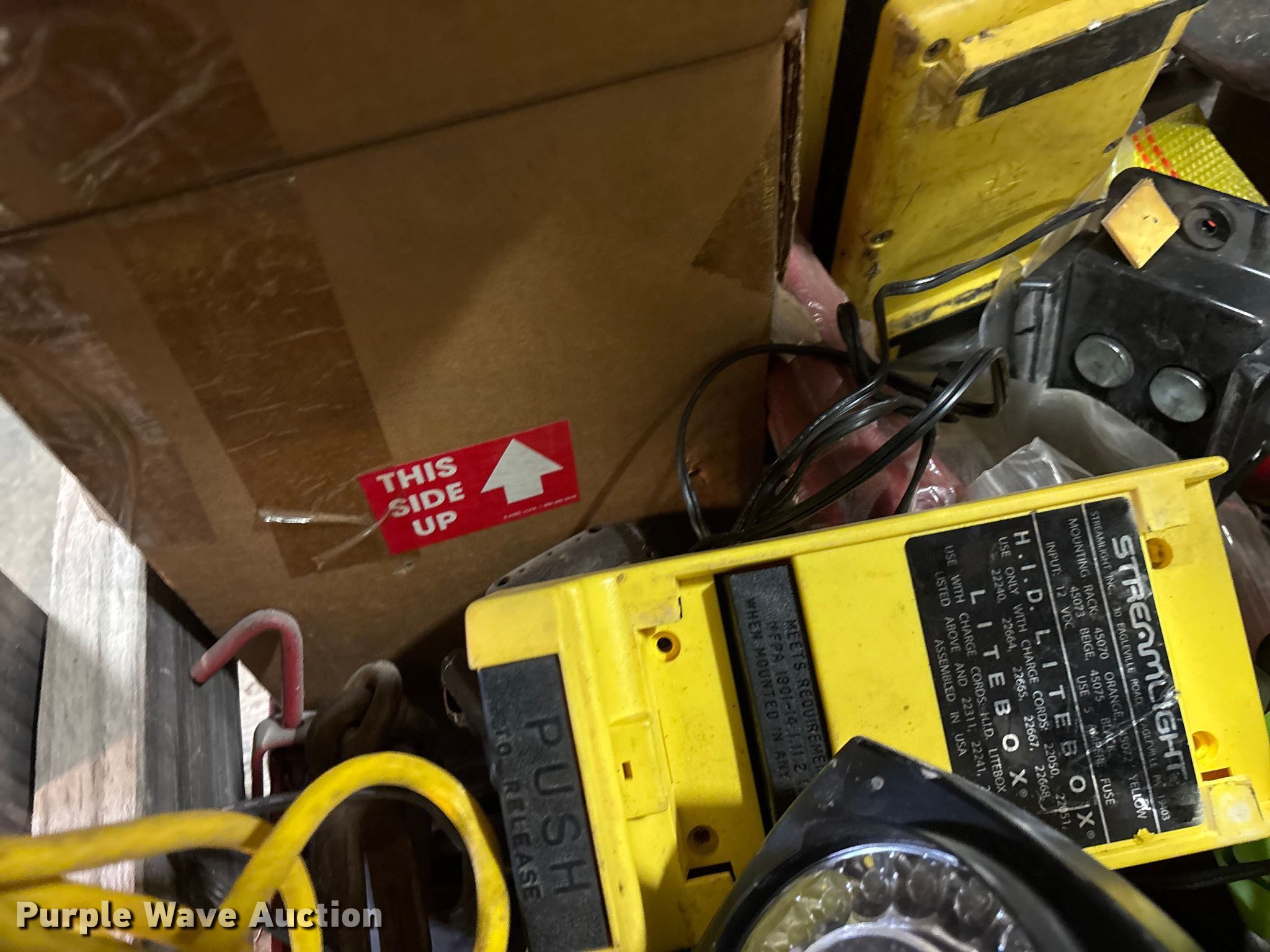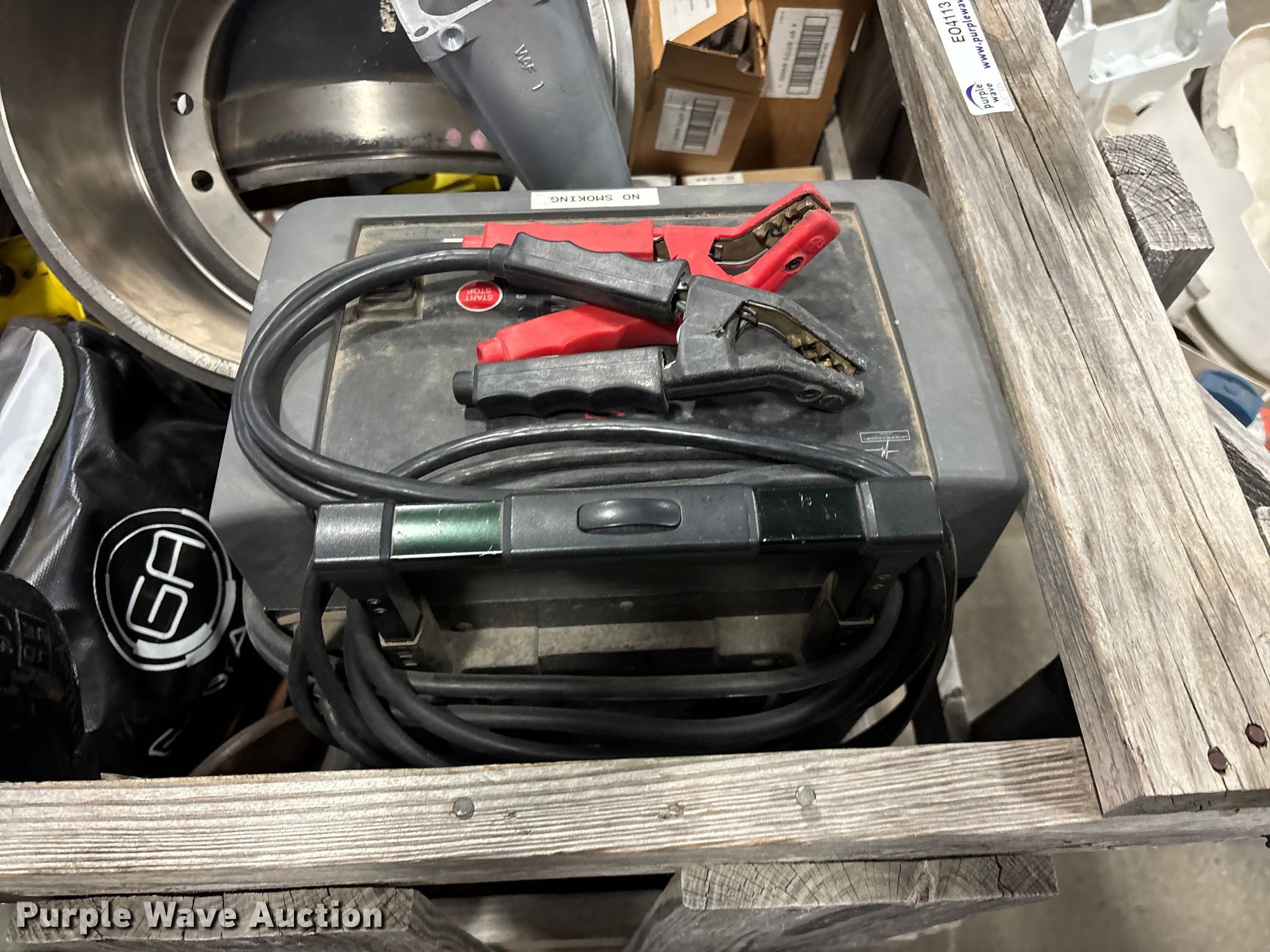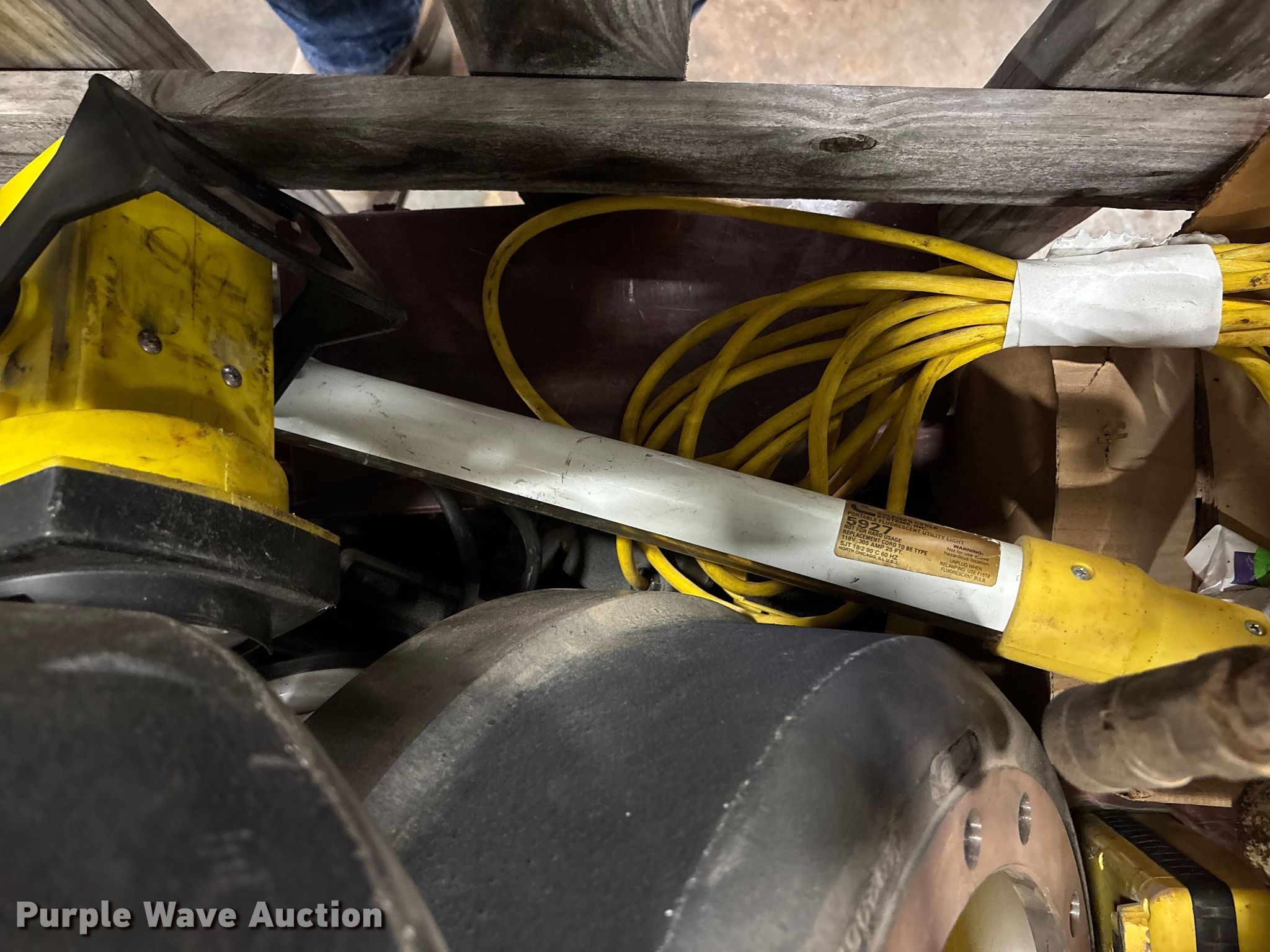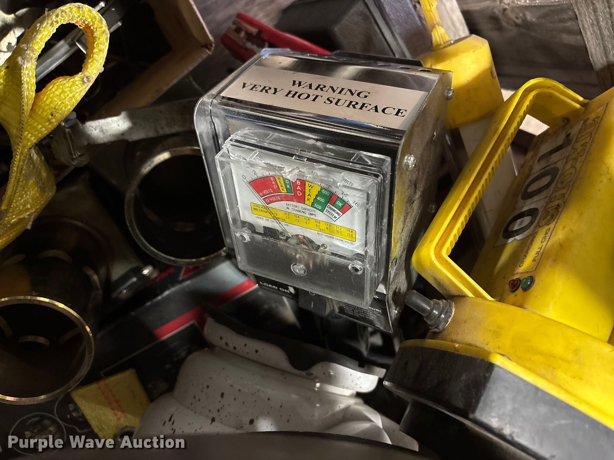 Purple Wave is selling a used Tools in Missouri. This item is a Tools with the following: Snatch blocks, Lights, Tools, Truck parts, Battery charger, Battery charger issues, Items in background not included