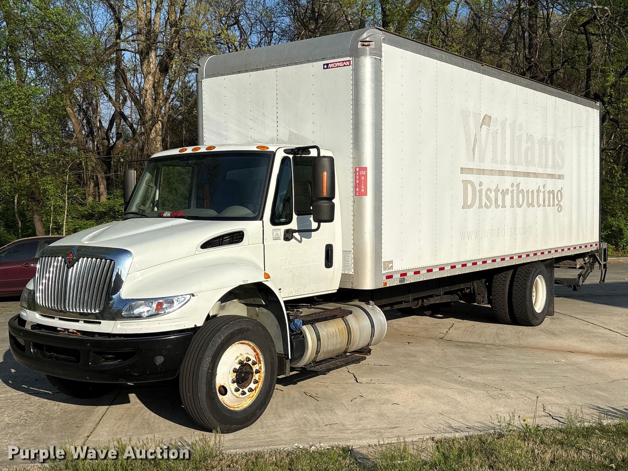 2019 International Durastar 4300 box truck. Miles: 367,701 on odometer, Hours: 8,554 on meter, VIN: 3HAMMMML0KL573306. Engine Cummins B6.7, Displacement: 6.7L, Cylinders: 6, Fuel type: Diesel. Transmission Automatic. Chassis Axles: Single, Suspension: Air, Brakes: Hydraulic, GVWR: 26,000 lbs. Interior AC, Heat, Power windows, Power locks, Cruise control. Features Bed Box bed, Morgan GVSD10326102, Serial: MWI67734-001, Length: 26' 6", Width: 8' 6", Height: 9', E-track rail system, Floor: Aluminum, Slider ramp 24", End gate lift, Maxon, Capacity: 3,000 lbs. Tires Size: 295/75R22.5. Alabama title. Title distribution may be delayed up to 14 days from verification of funds. Huntsville, AL 35802