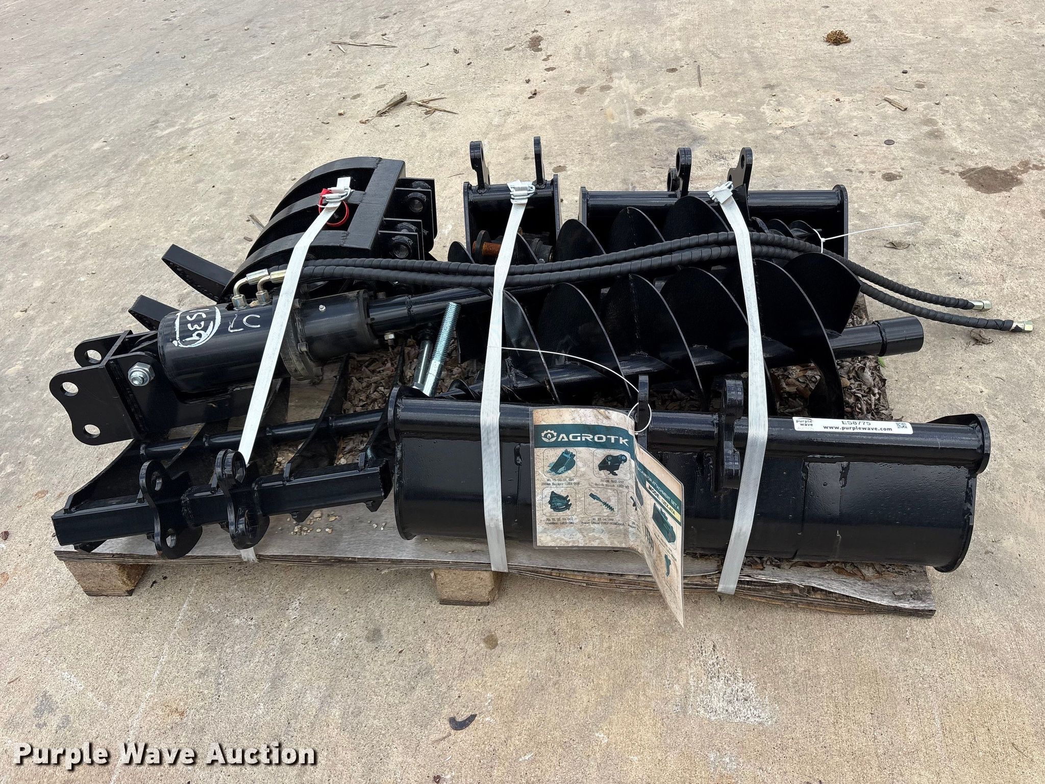 Purple Wave is selling a used Excavator Attach. in Texas. This item is a Agrotk mini excavator attachments with the following: (3) buckets, Quick coupler, Grapple, (2) augers, Rake, Ripper