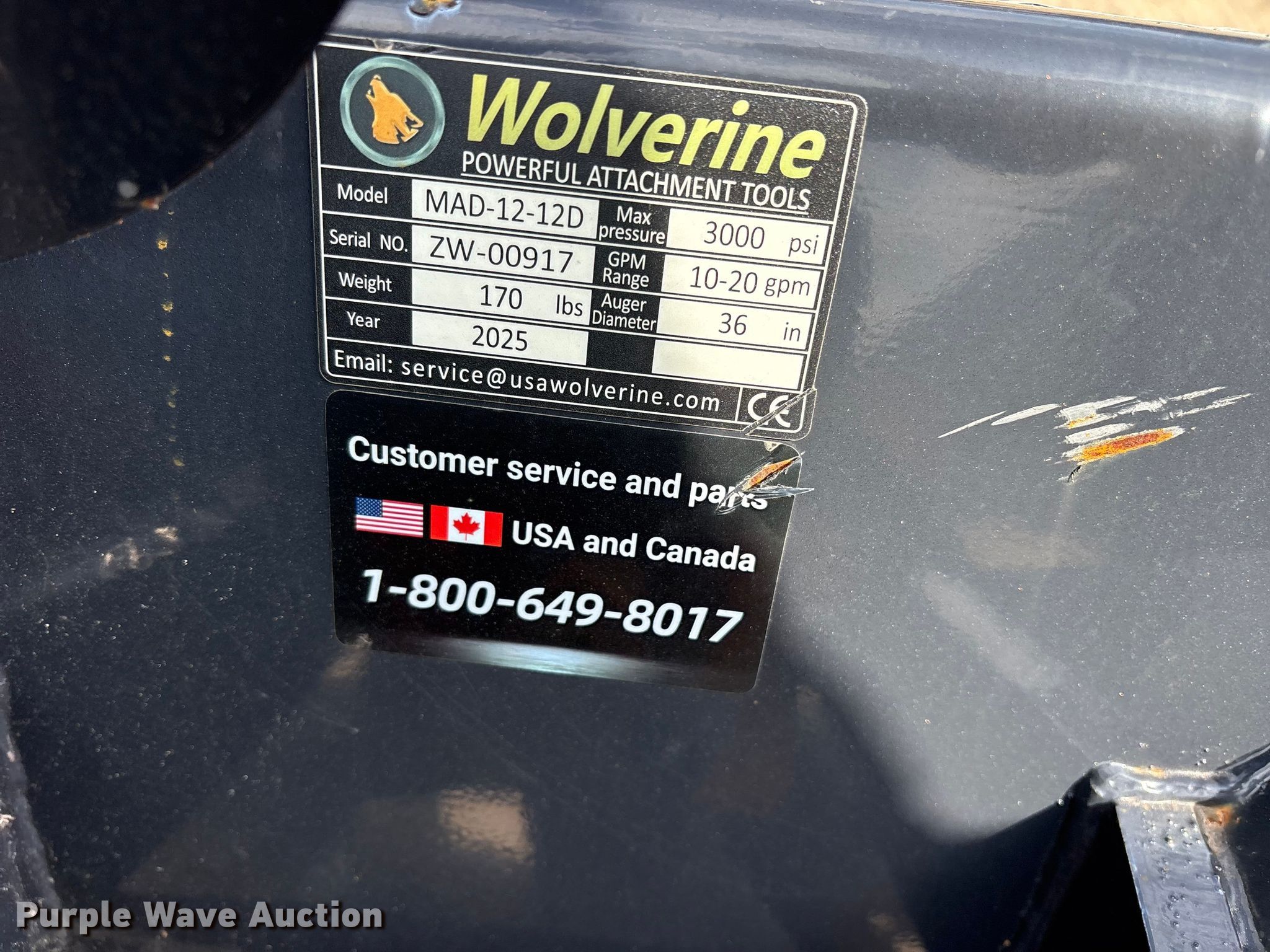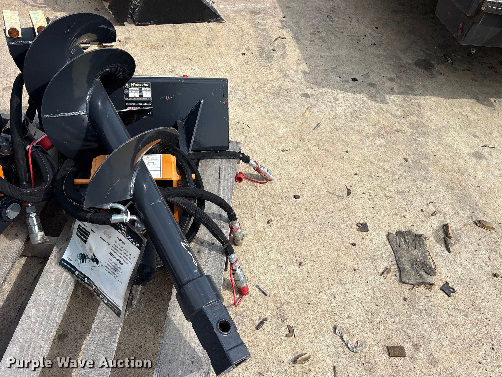 Purple Wave is selling a used Skid Steer Attach. in Texas. This item is a 2025 Wolverine MAD-12-12D compact utility loader auger with the following: Serial: ZW-00917