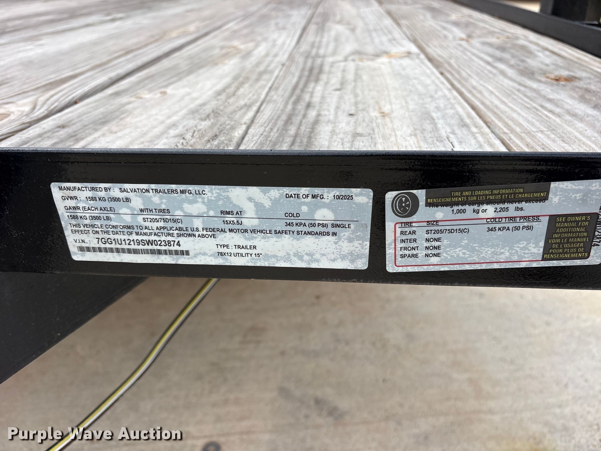 Purple Wave is selling a used Car or Utility Trailer in Texas. This item is a 2025 Salvation utility trailer with the following: VIN: 7GG1U1219SW023874