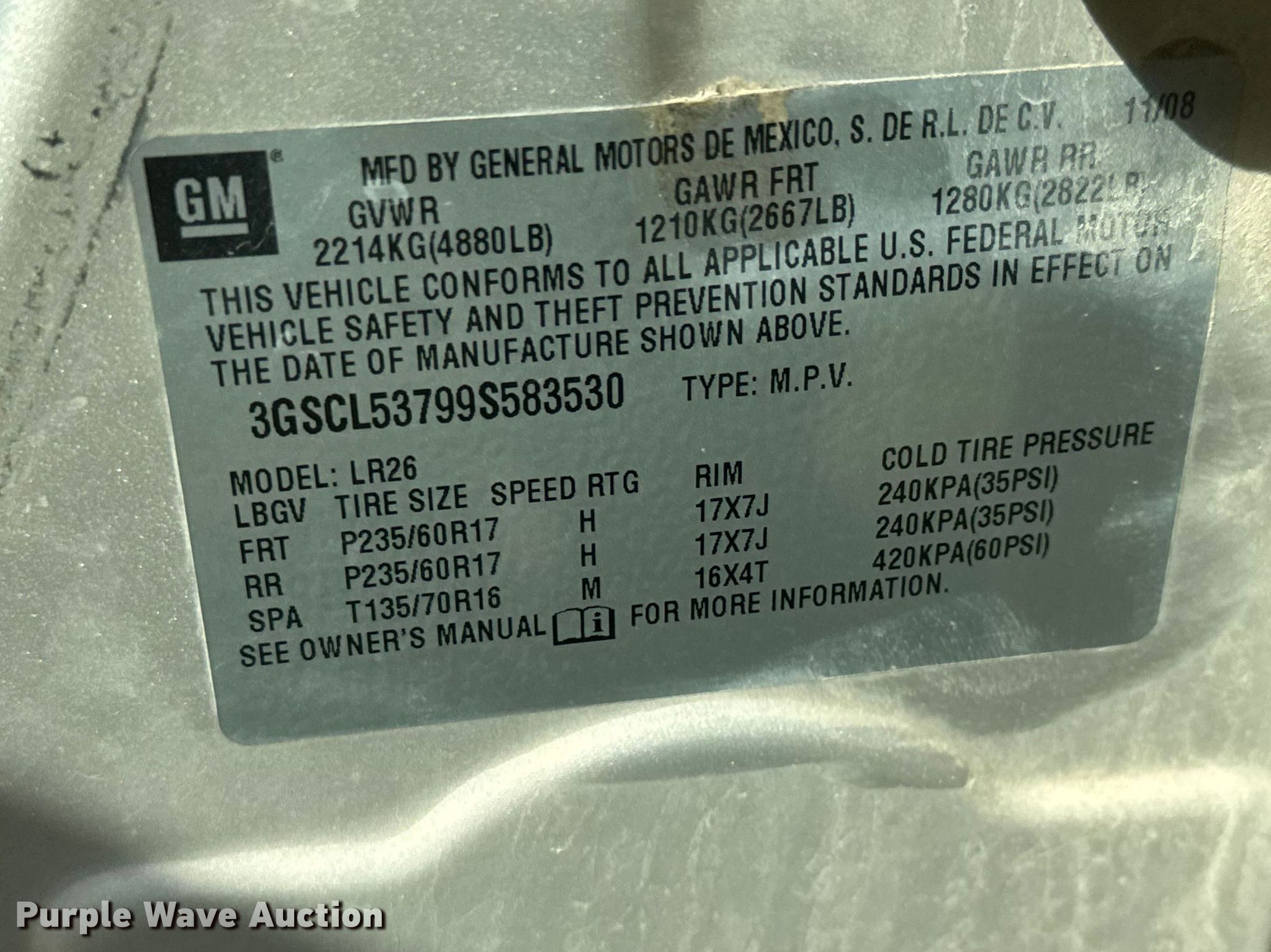 - VIN: 3GSCL53799S583530